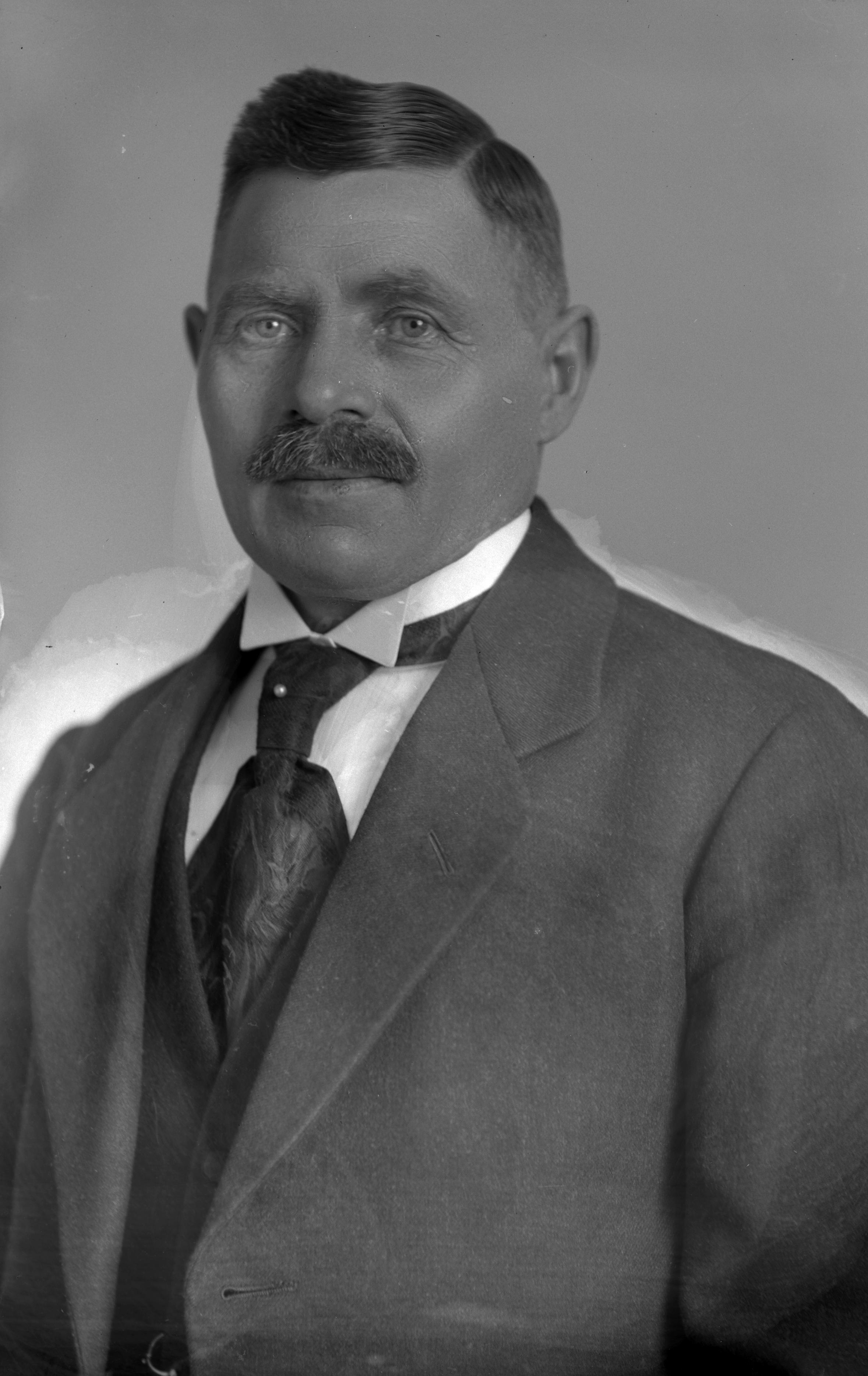 Porträtt i halvfigur av byggmästare Peter Nyström.