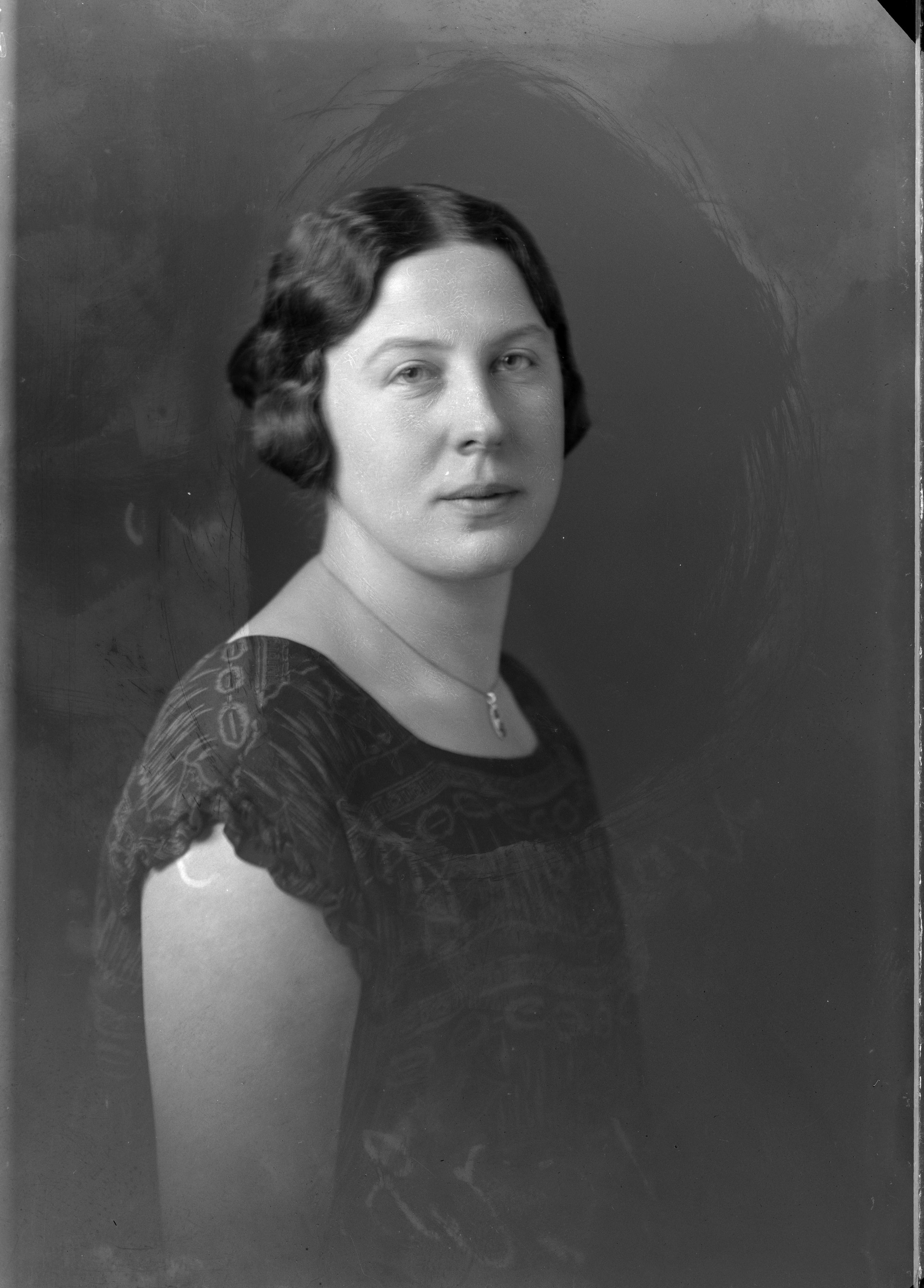 Porträtt i halvfigur av studentskan Berta Hökberg.