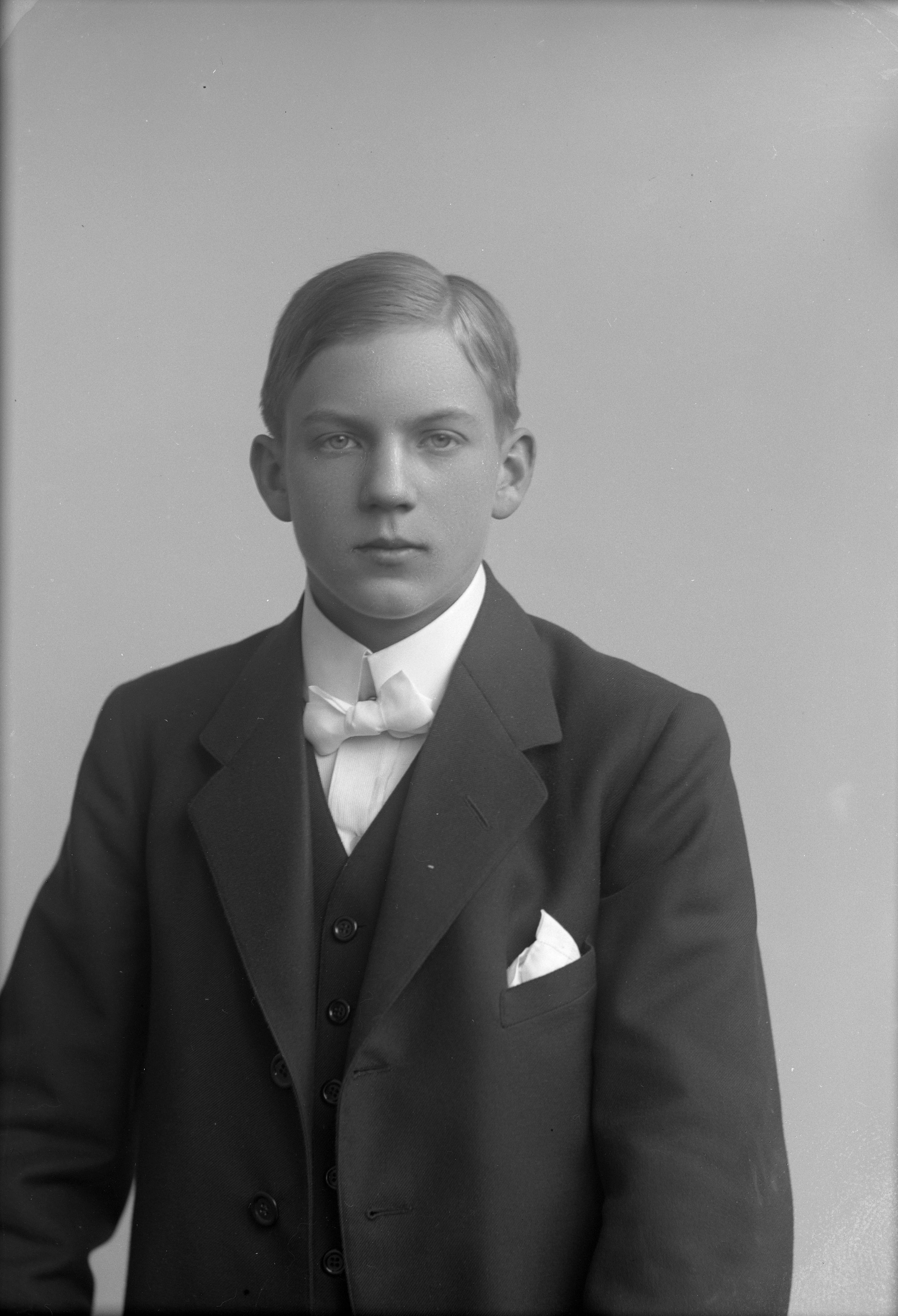 Porträtt i halvfigur av konfirmanden Sigurd Håkansson.