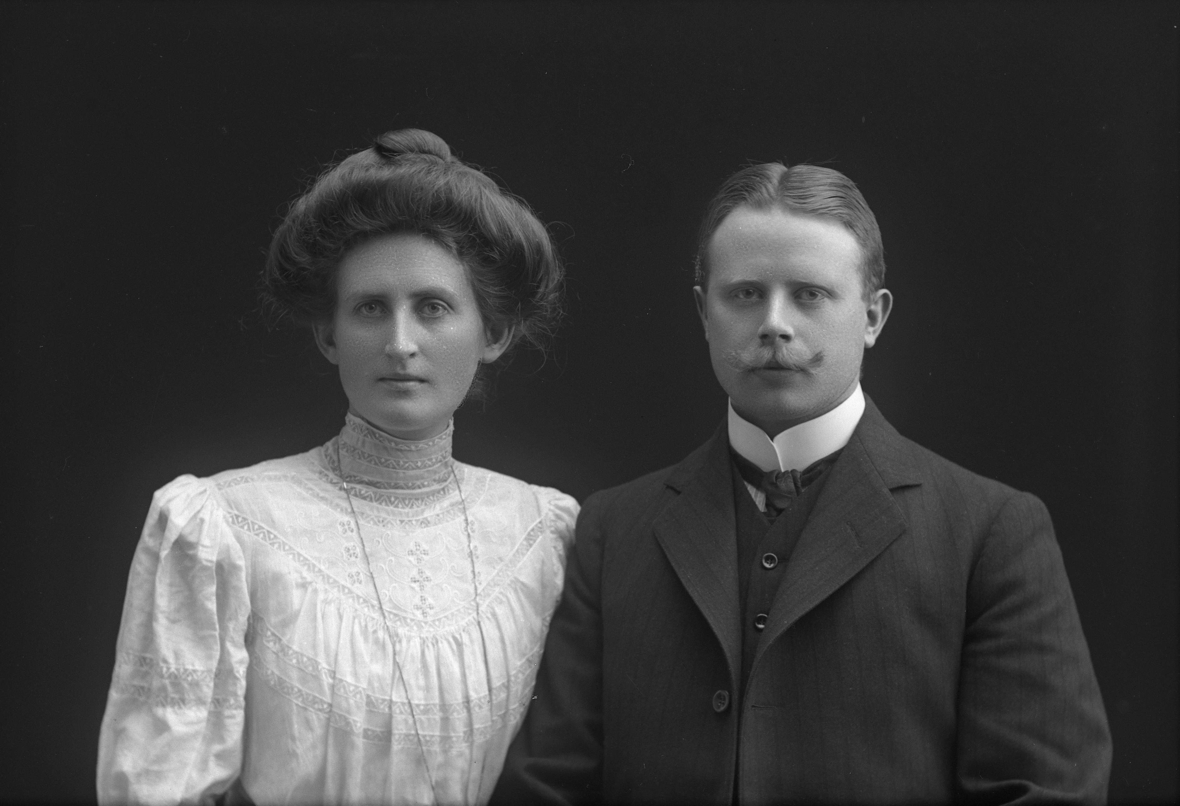 Porträtt i halvfigur av folkskollärare Hjalmar Davidsson med frun Anna.