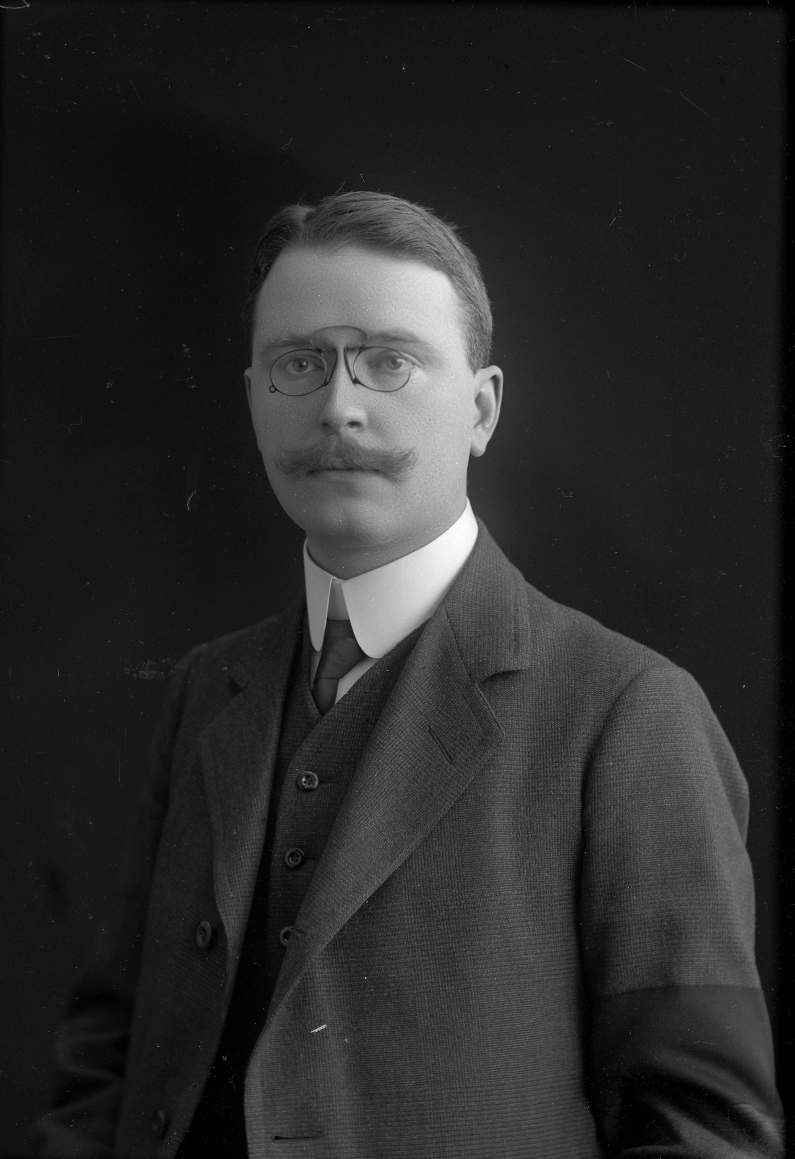 Porträtt i halvfigur av bankkamrer Nils Valdemar Dunér.