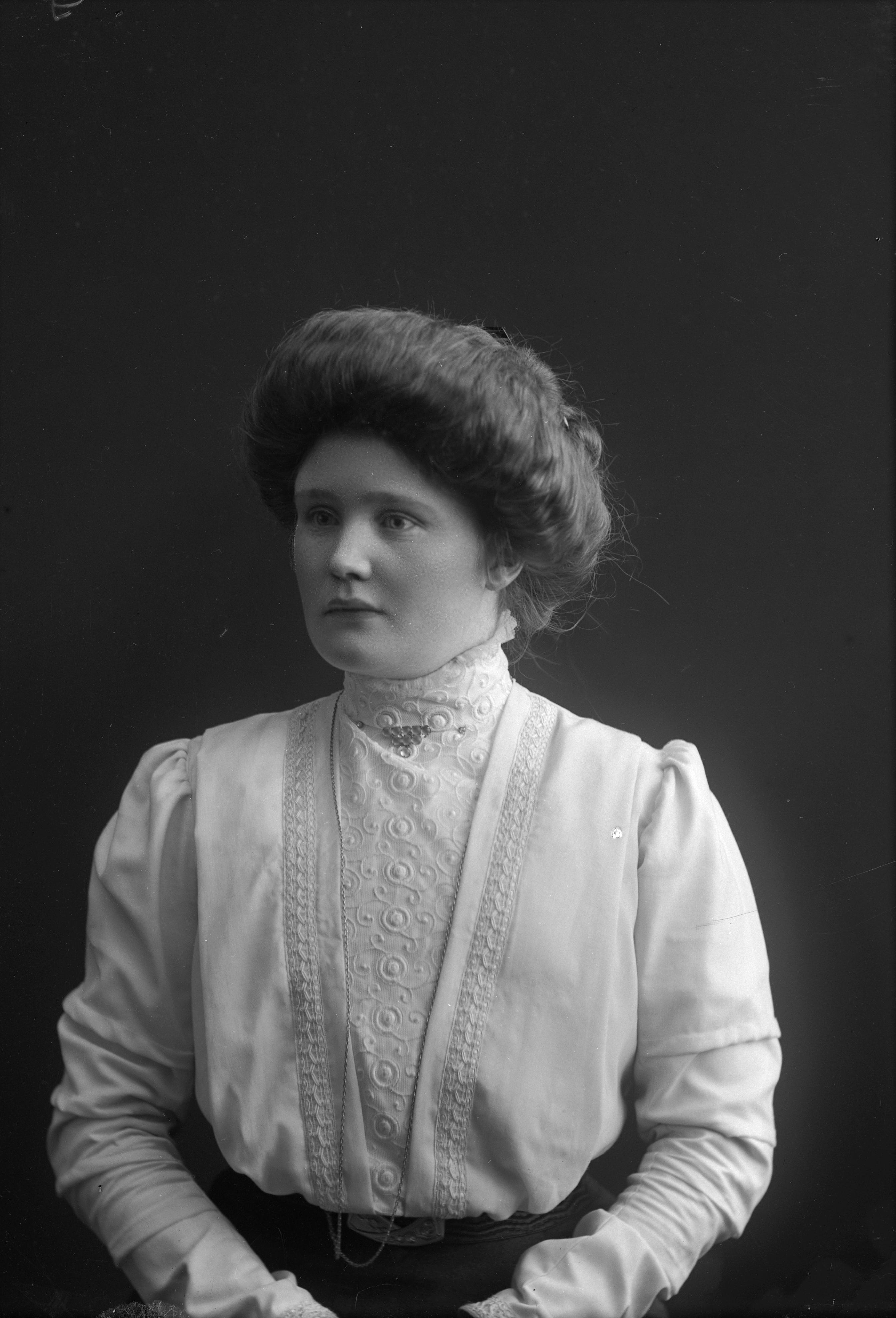 Porträtt i halvfigur av Alma Nilsson.