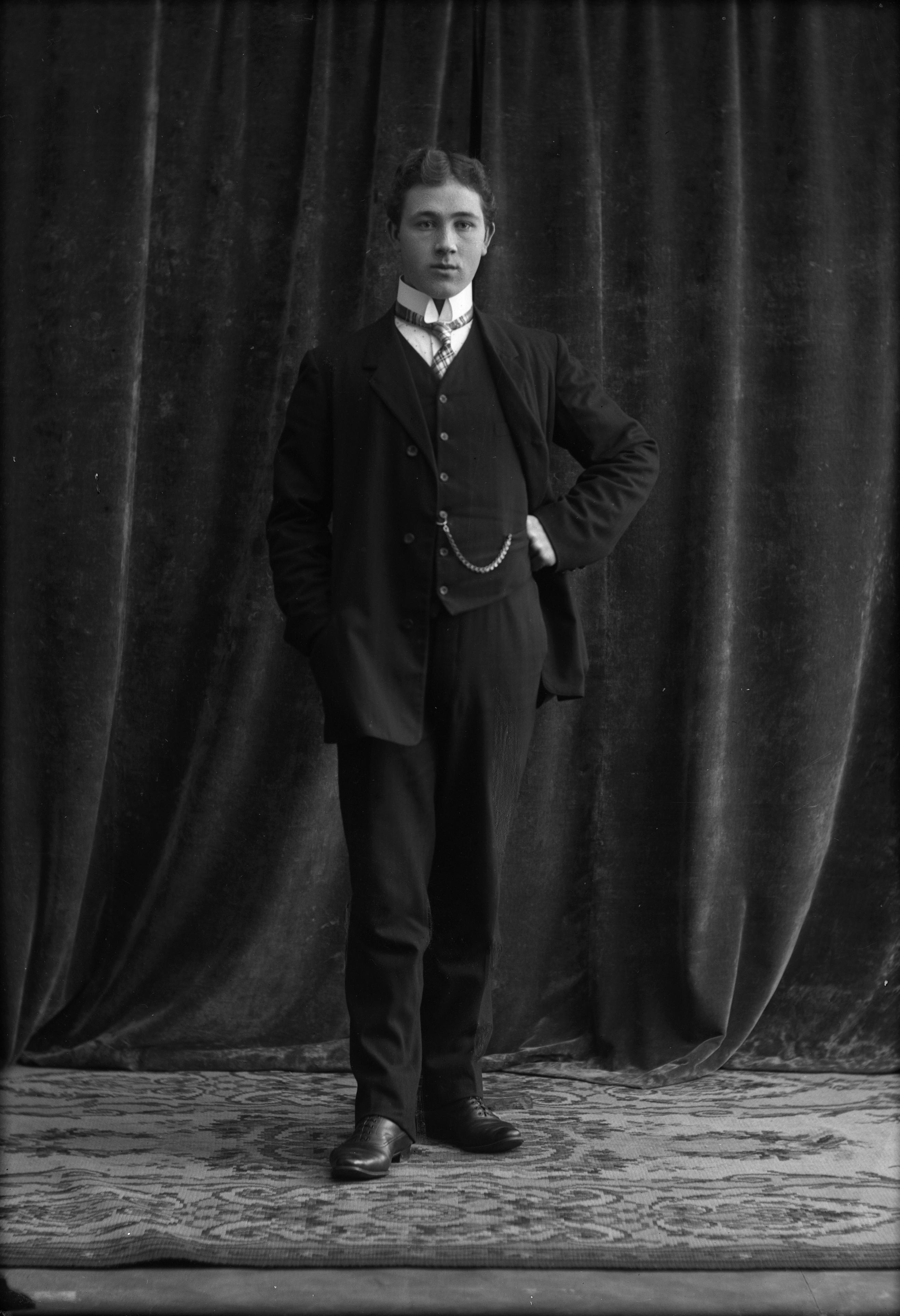 Porträtt i helfigur av Emil Asklund vid Stora Valskvarn.