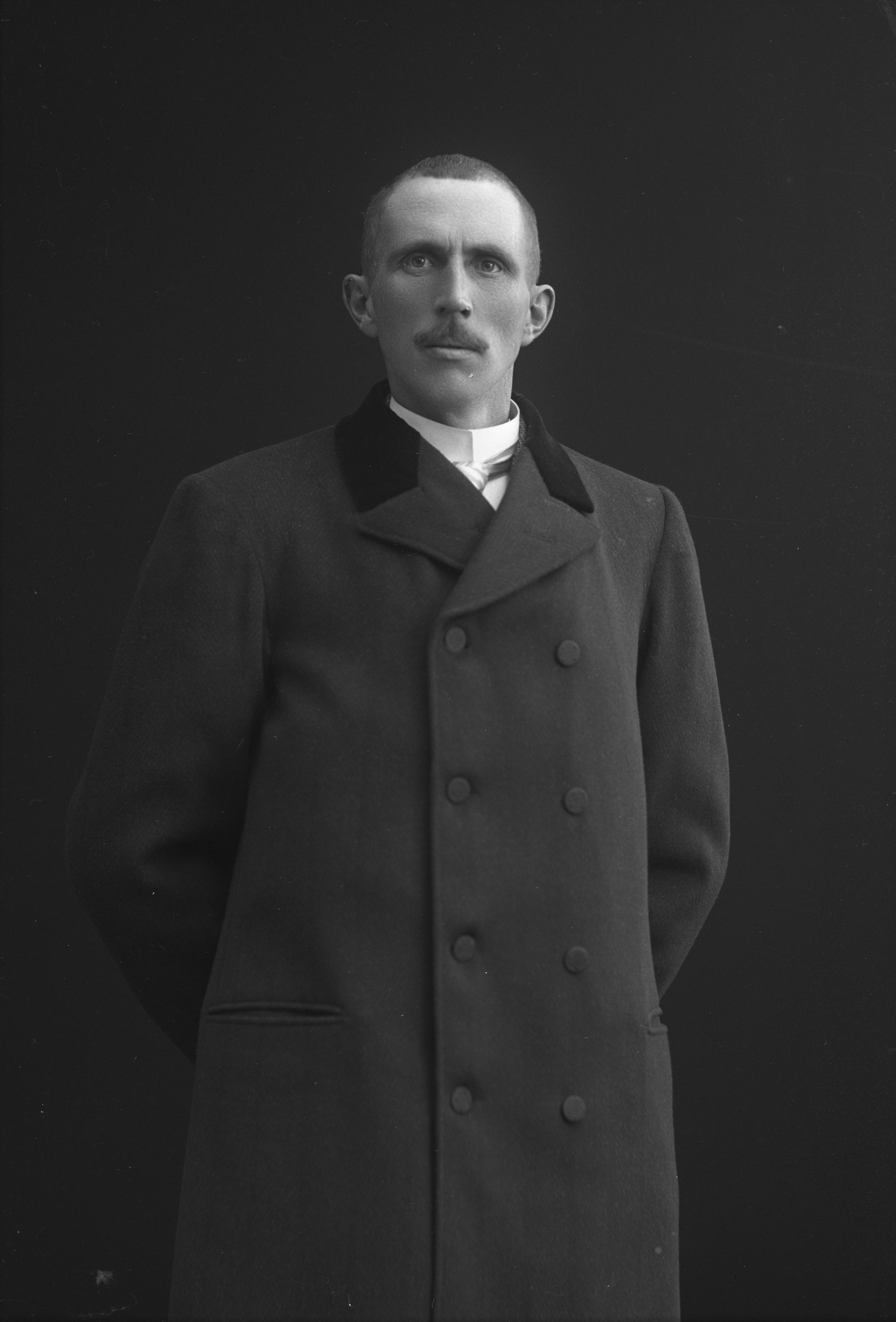 Porträtt i helfigur av lantbrukare Jöns Jakobsson.