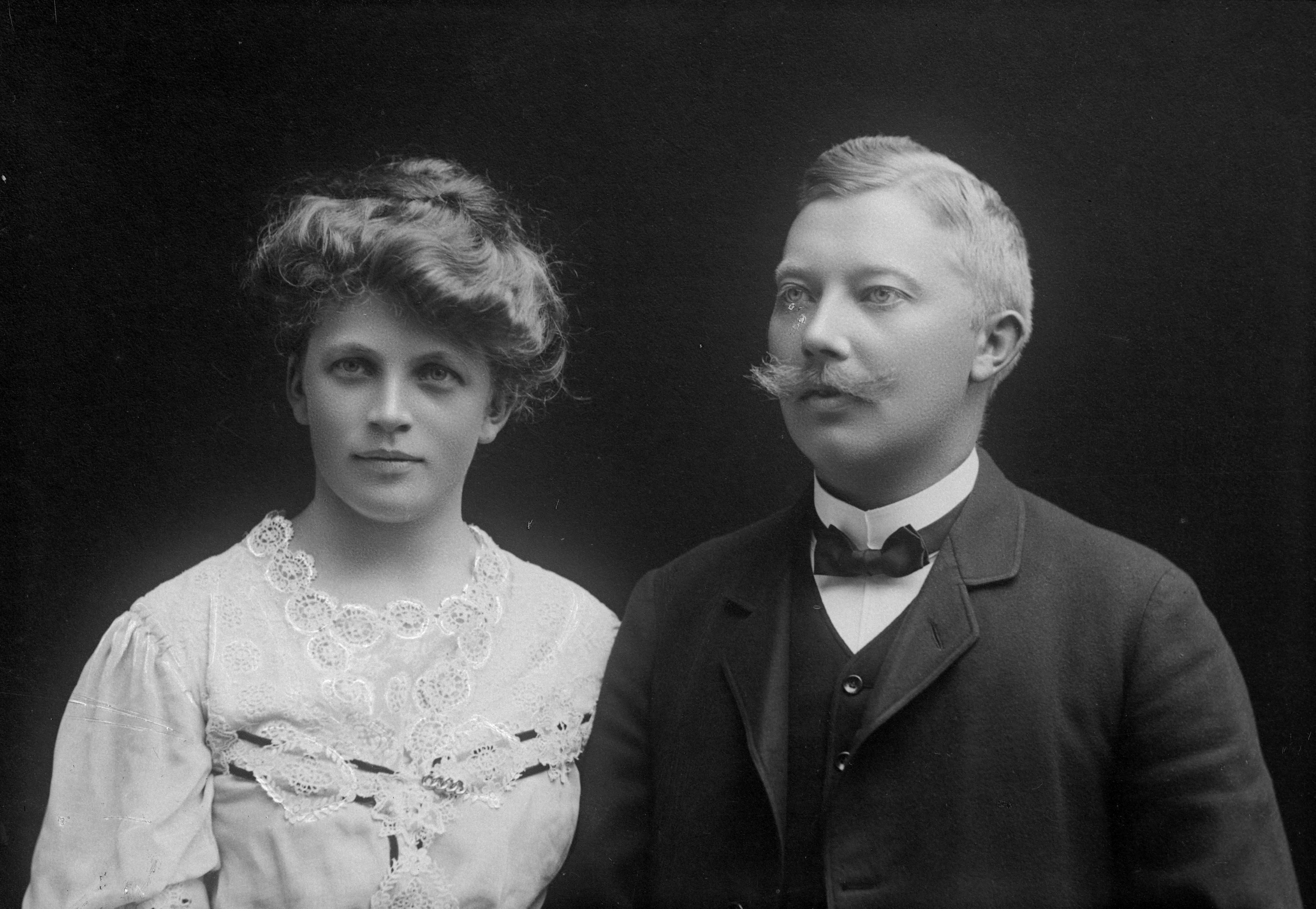 Porträtt i halvfigur av häradshövding Carl Magnus Möller med okänd kvinna.