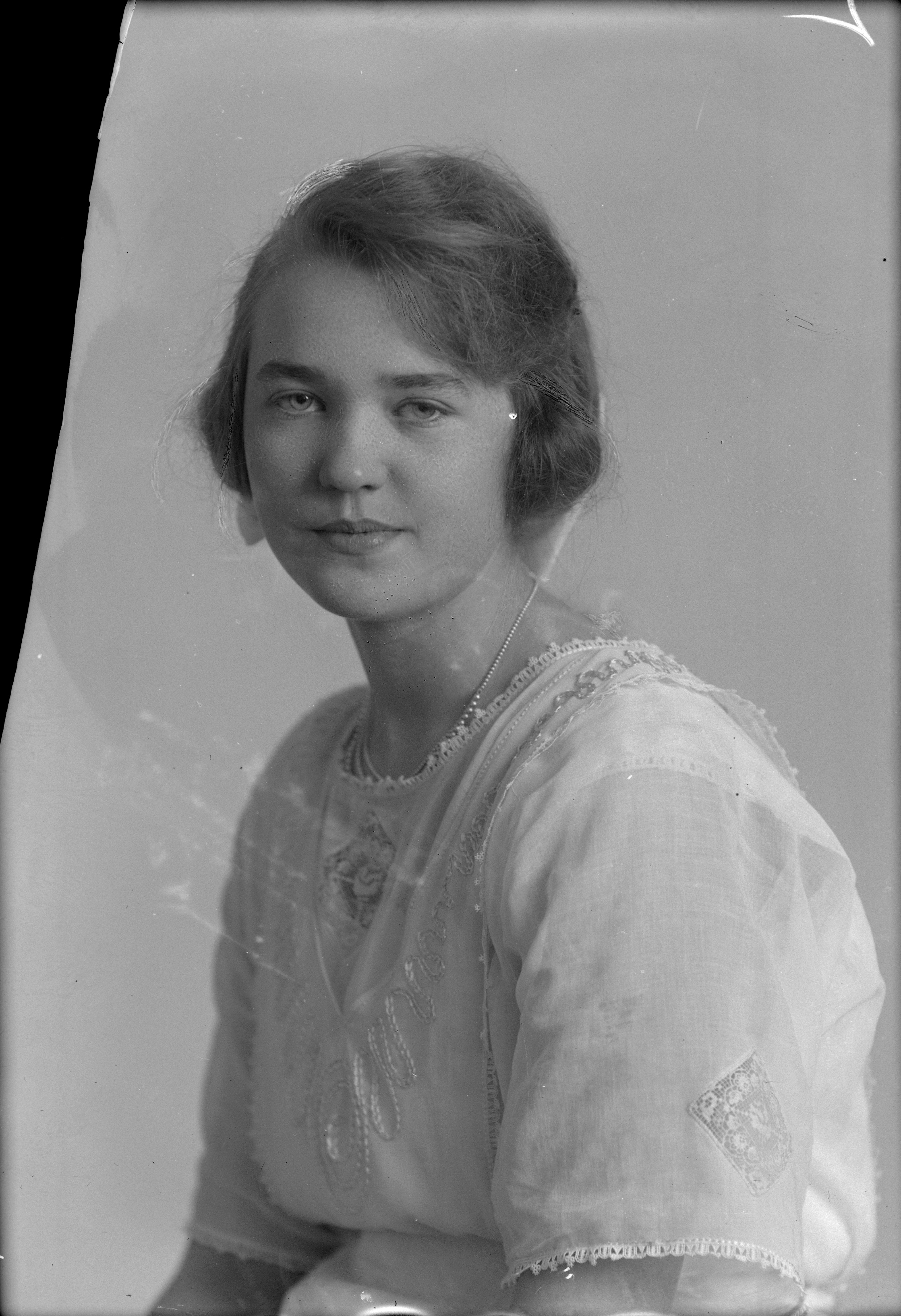 Porträtt i halvfigur av konfirmanden Rosa Ljungberg.