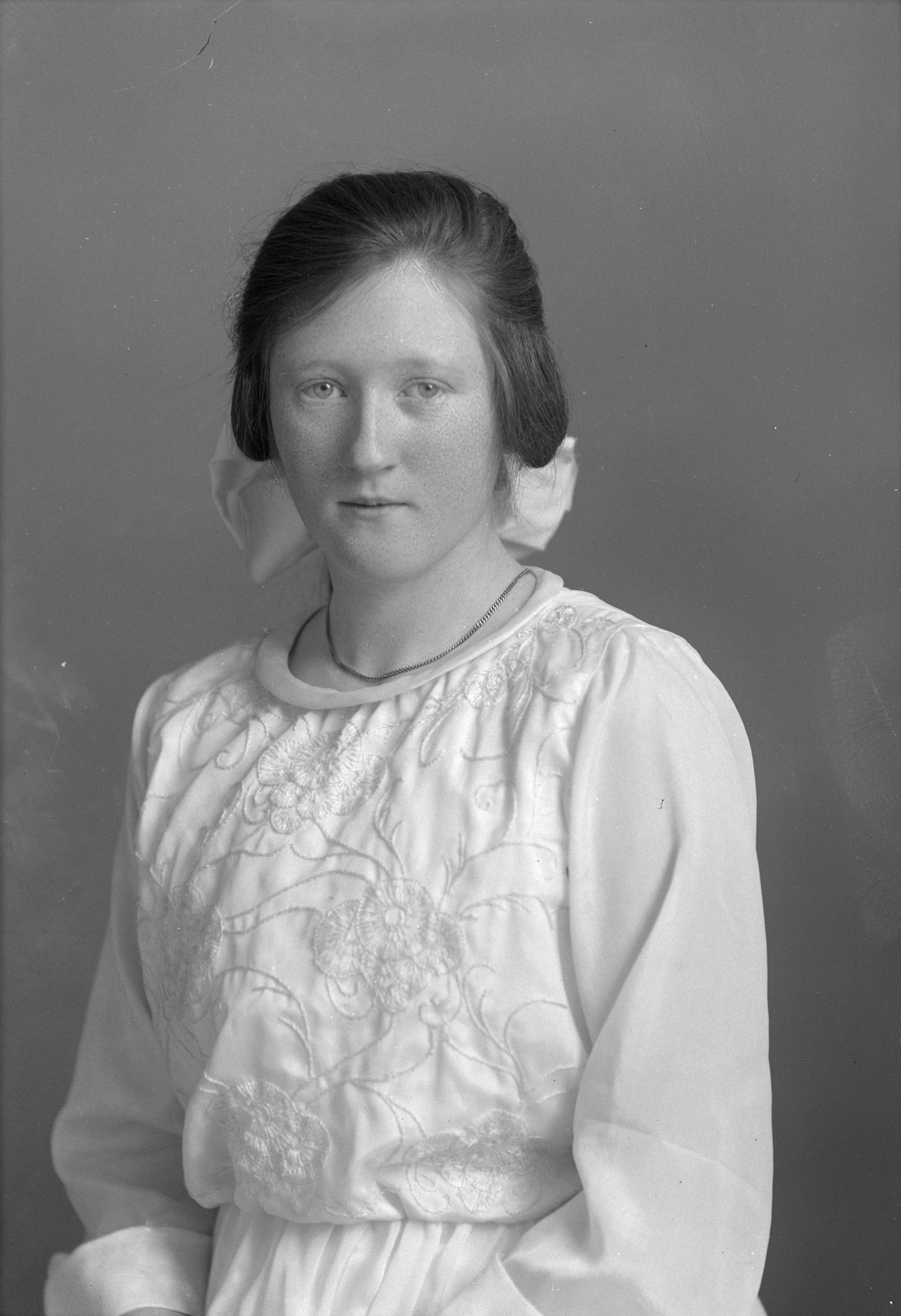 Porträtt i halvfigur av konfirmanden Birgit Wendt.