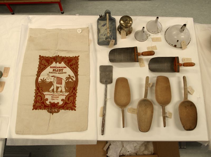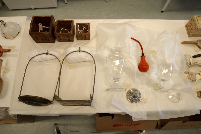 En samling föremål från A. Ekströms speceriaffär i Malmö.