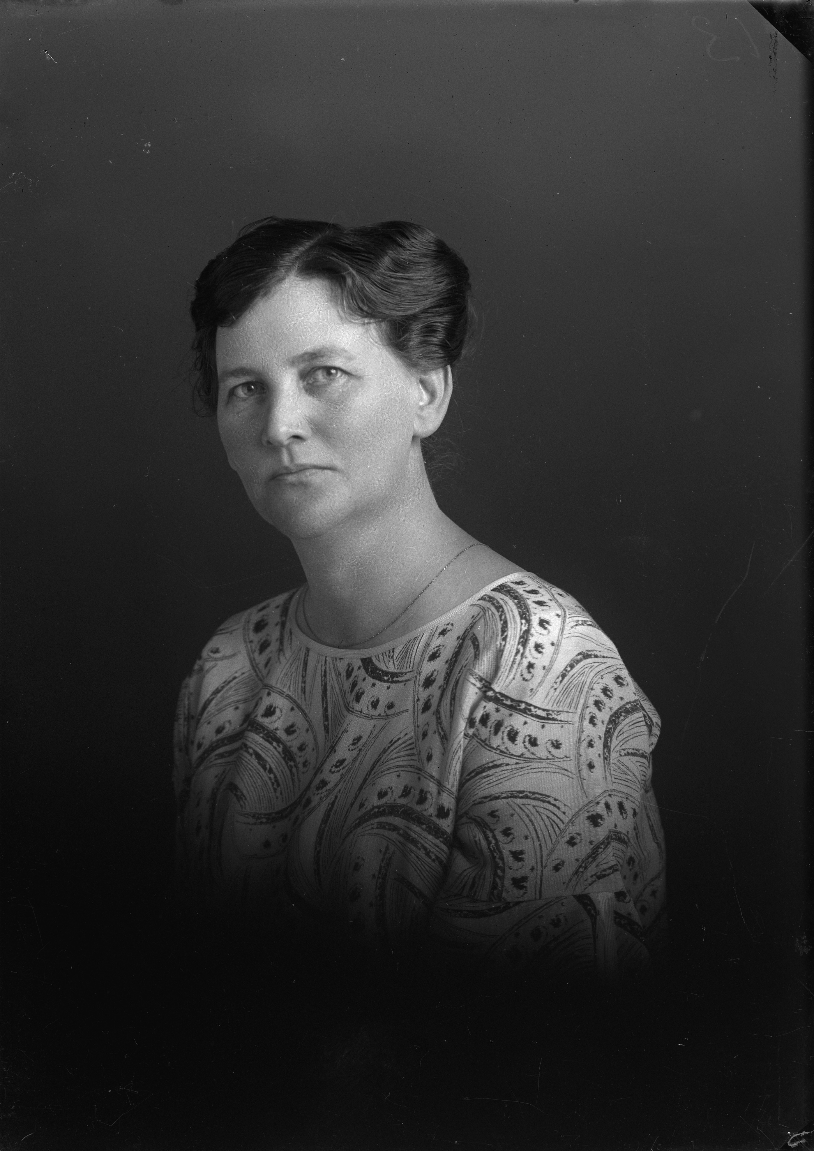 Porträtt i halvfigur av Ada Påhlsson, kontorist vid Norrköpings Bomullsväveri.