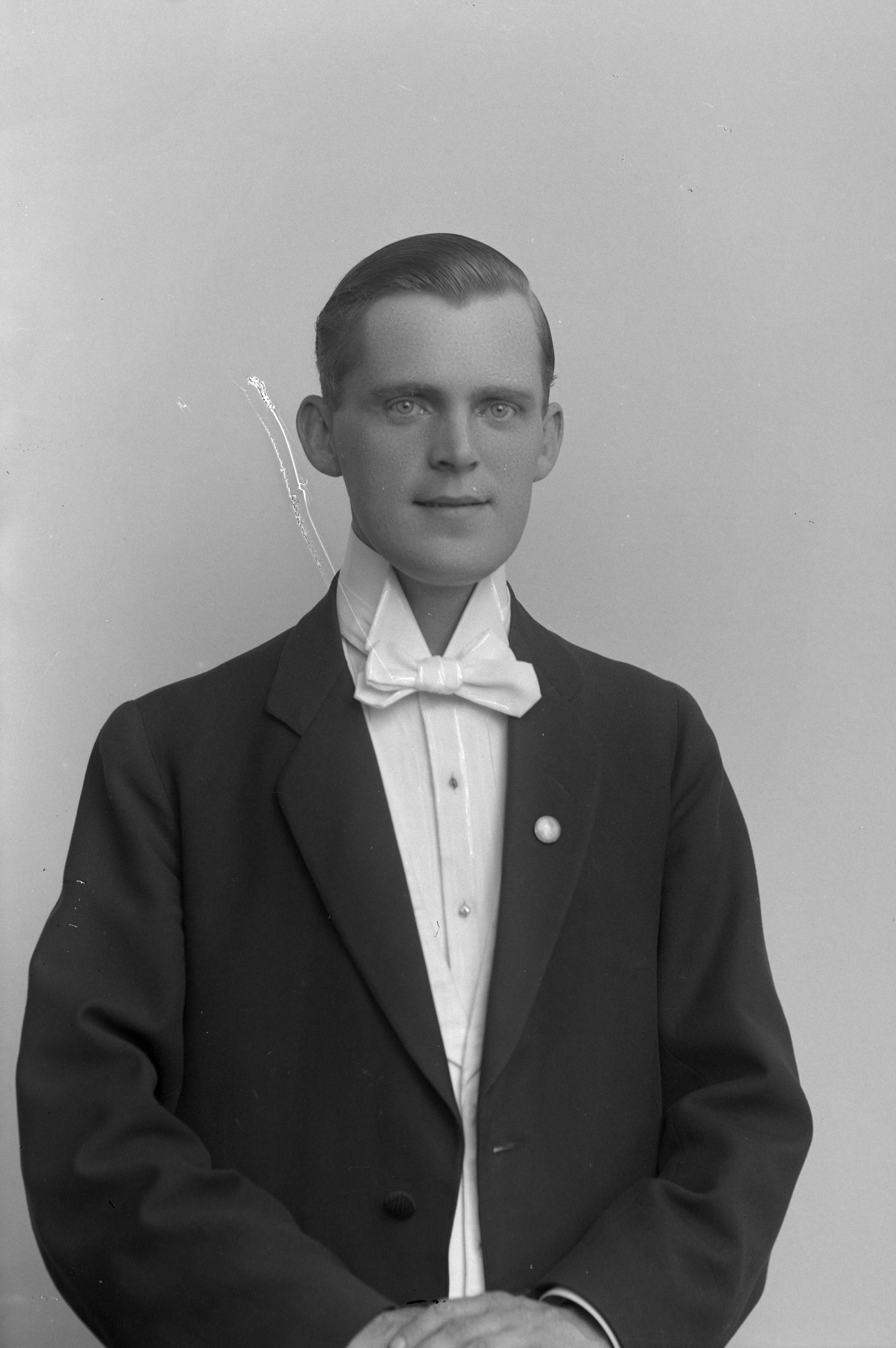 Porträtt i halvfigur av brukskontorist Josef Bogren vid Tidaholms Bruk AB.