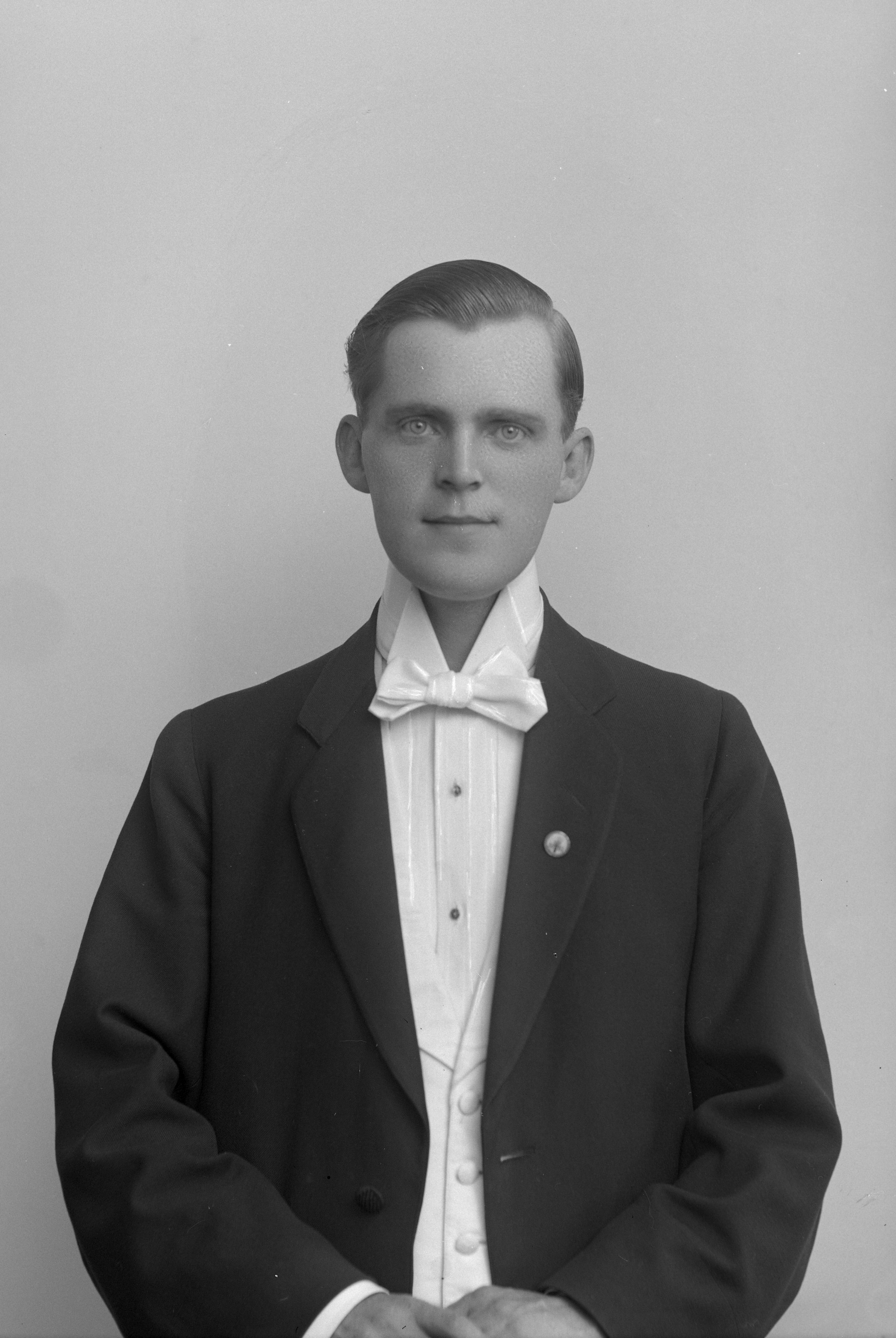 Porträtt i halvfigur av brukskontorist Josef Bogren vid Tidaholms Bruk AB.
