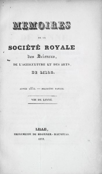 Vie de Linné, rédigée sur les documents autographes laissés par ce grand homme, et suivie de l'analyse de sa correspondance avec les principaux naturalistes de son époque. Par A.L.A. Fée, Paris. F. G. Levrault, Libraire, rue de la Harpe, no 81, Treuttel et Wurtz, Libraires, rue de Lille. 1832