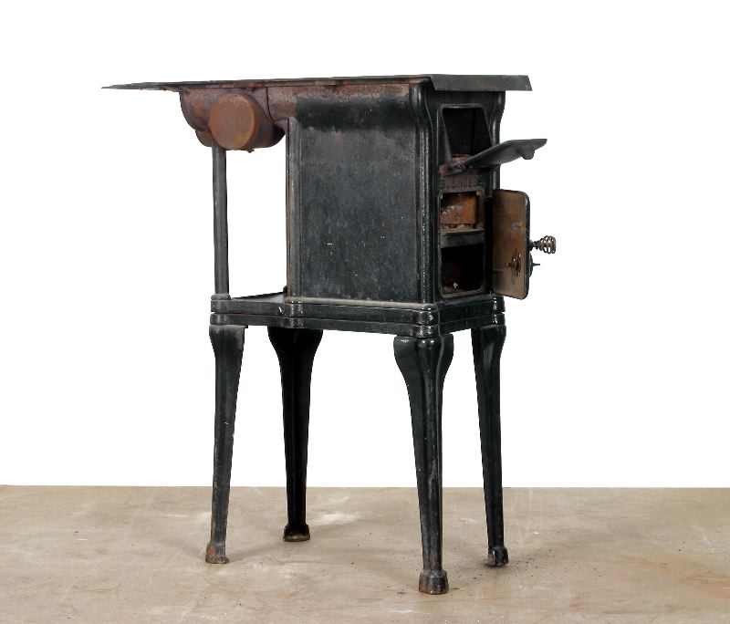 - Spis, vedspis, av svartmålat gjutjärn. Rektangulär form, fyra svängda, höga ben. 2 luckor på fronten för eldning och tömning av aska/reglering av drag. På spishällen finns uttag för 2 st lösa kokplattor av järnringar. På baksidan finns uttag för eldningsrör. Spisen har invändigt varit klädd med keramik för värmelagring, endast rester av keramiken återstår. Märkt på framsidan "Bolinders kaminspis No 4".