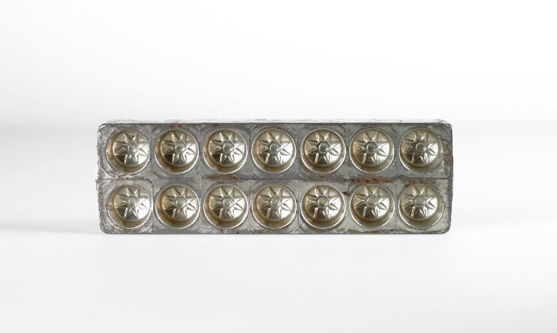 Pralinform av plåt till praliner med stjärnmönster.