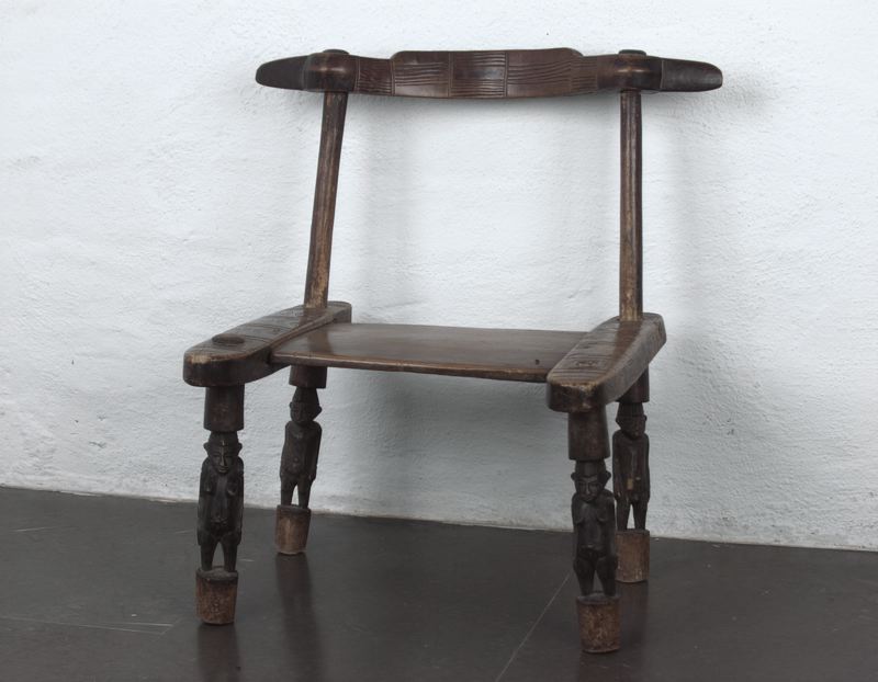 benen är fästade och vilka är ornerade i geometriska mönster. Ryggstödet