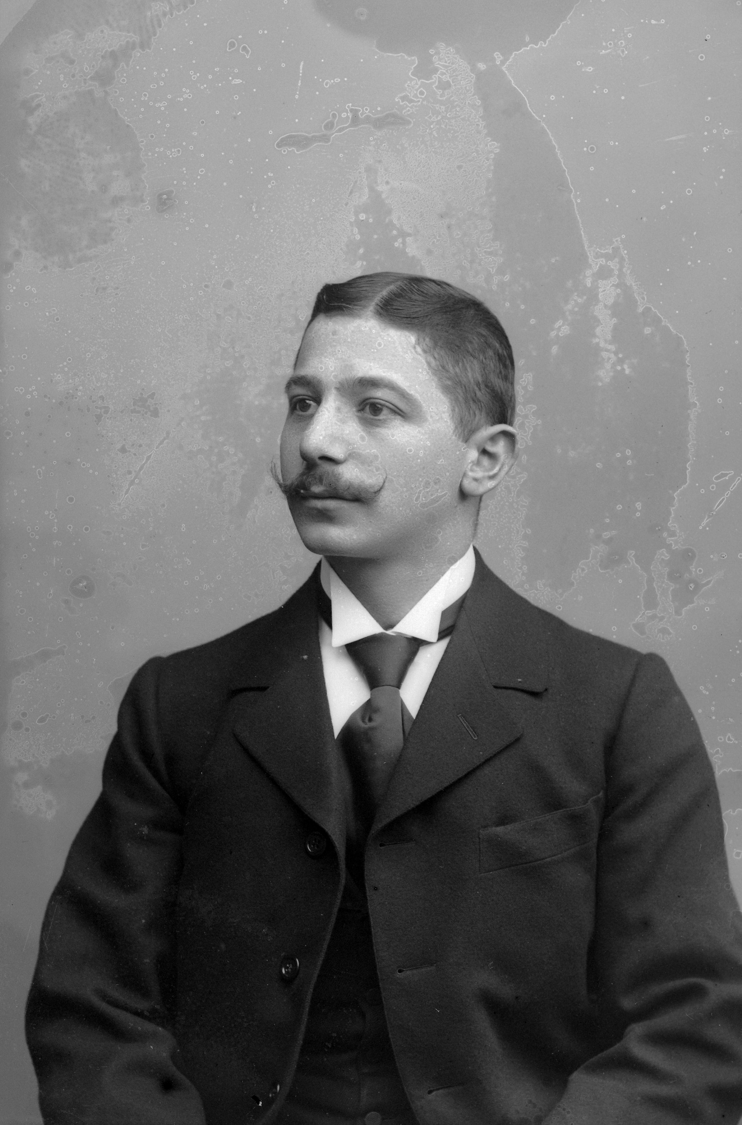 Porträtt i halvfigur av textilhandlare Lehman vid August Sandgrens Vitvaruaffär.