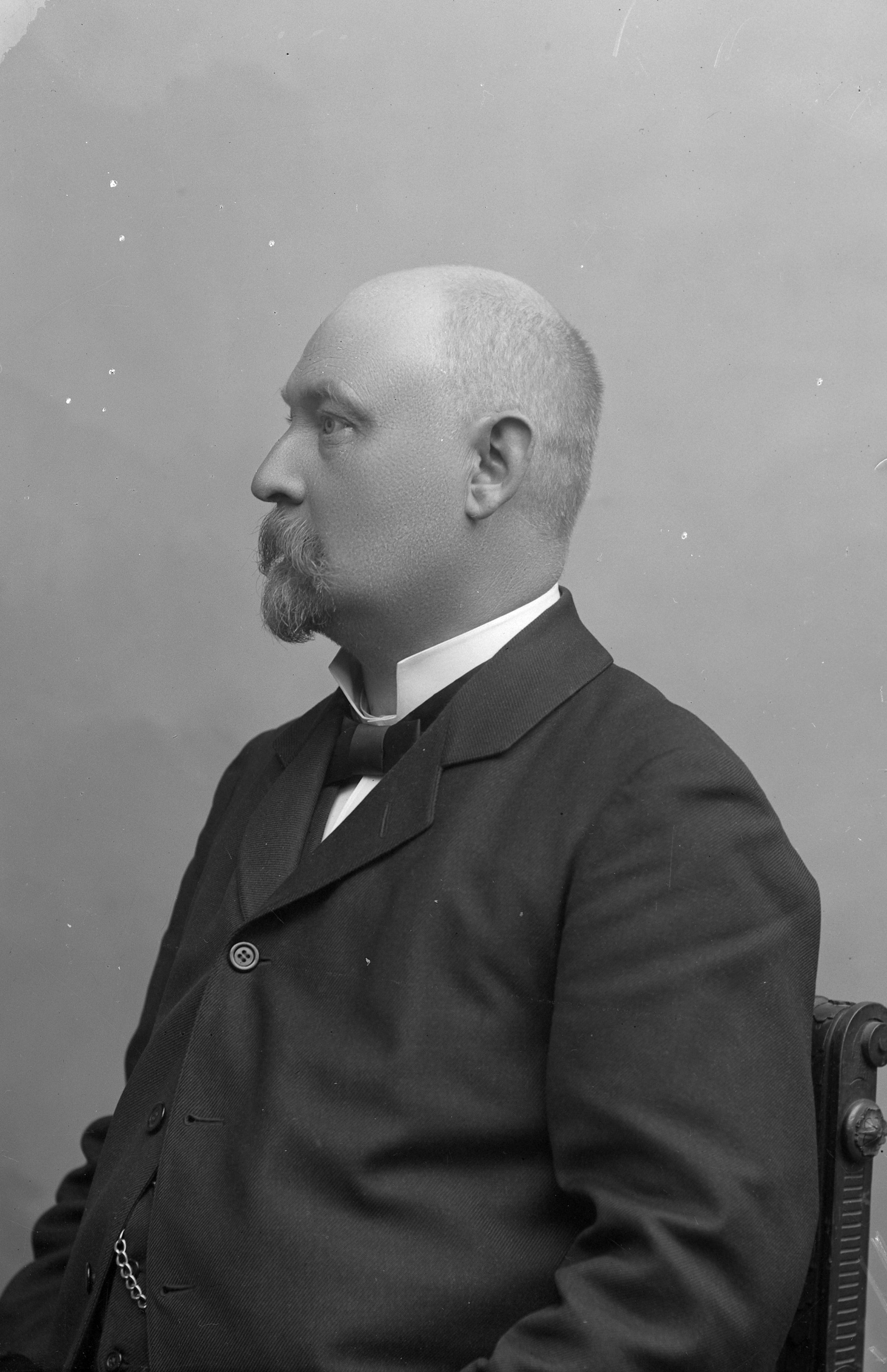 Porträtt i halvfigur, profil, av kronofogde Karl Jakob Emanuel Möller i Eslöv.