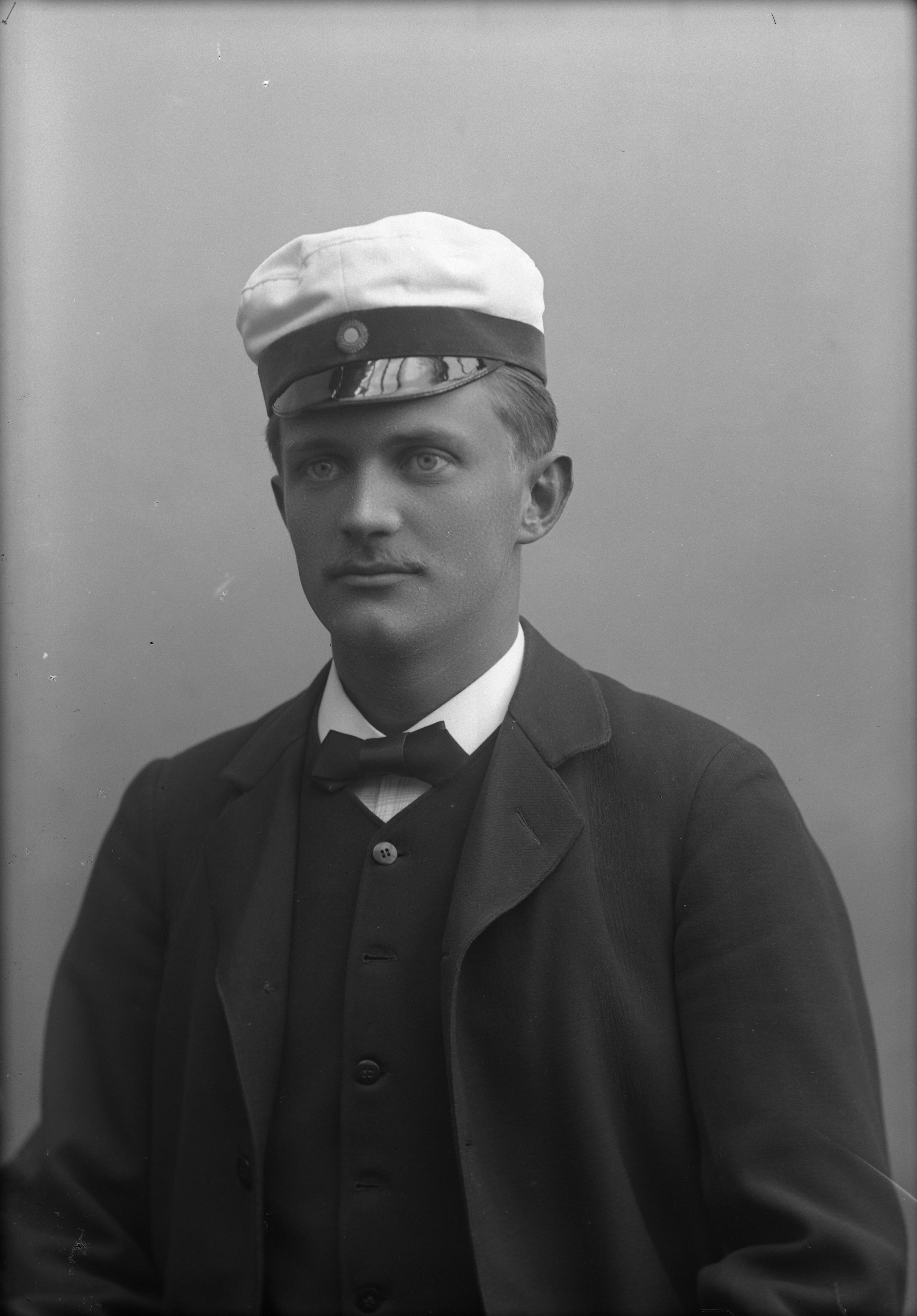 Porträtt i halvfigur av herr Thårup, iklädd studentmössa.