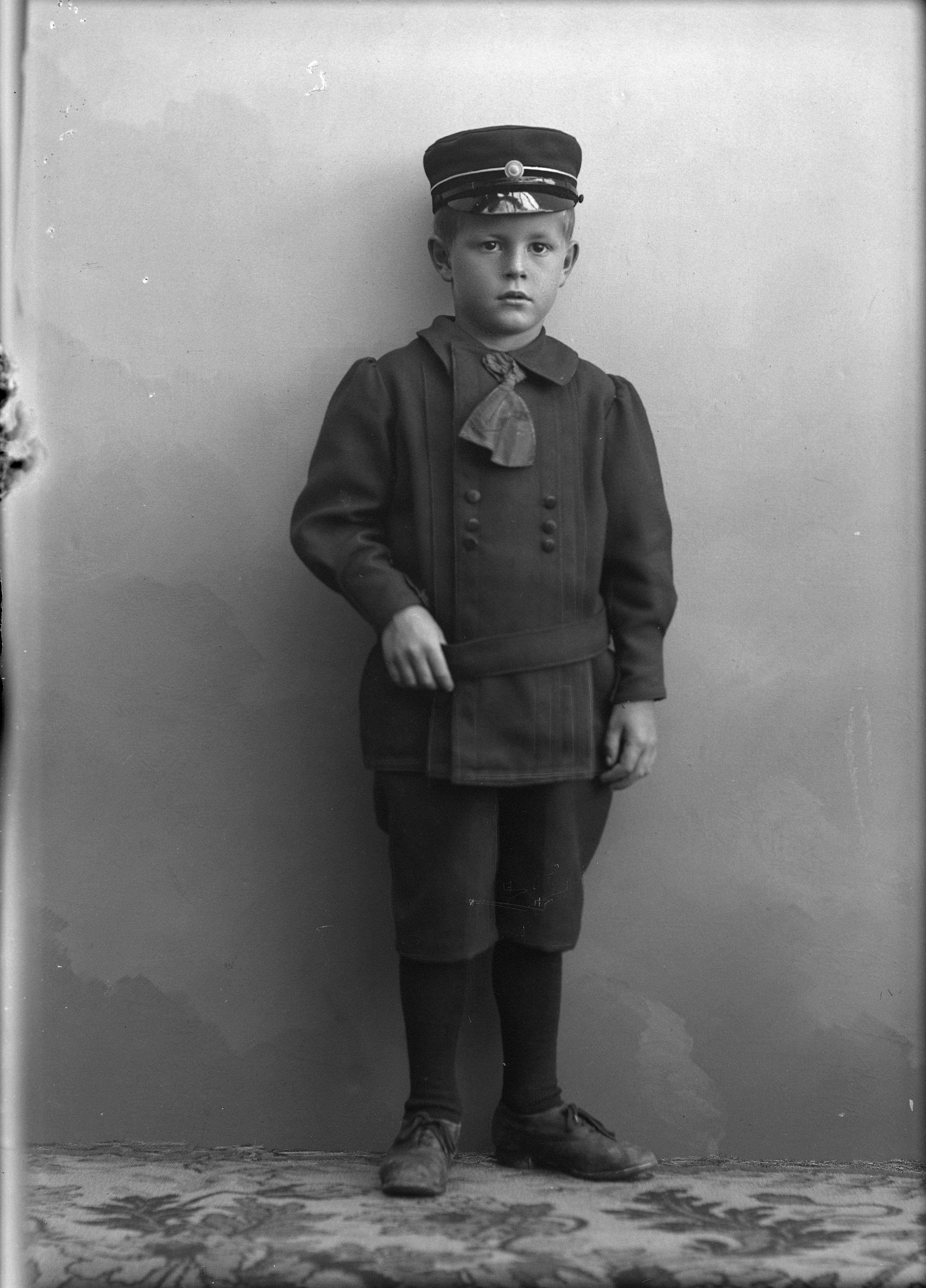 Porträtt i helfigur av Gunnar Edstrand, iklädd skärmmössa.