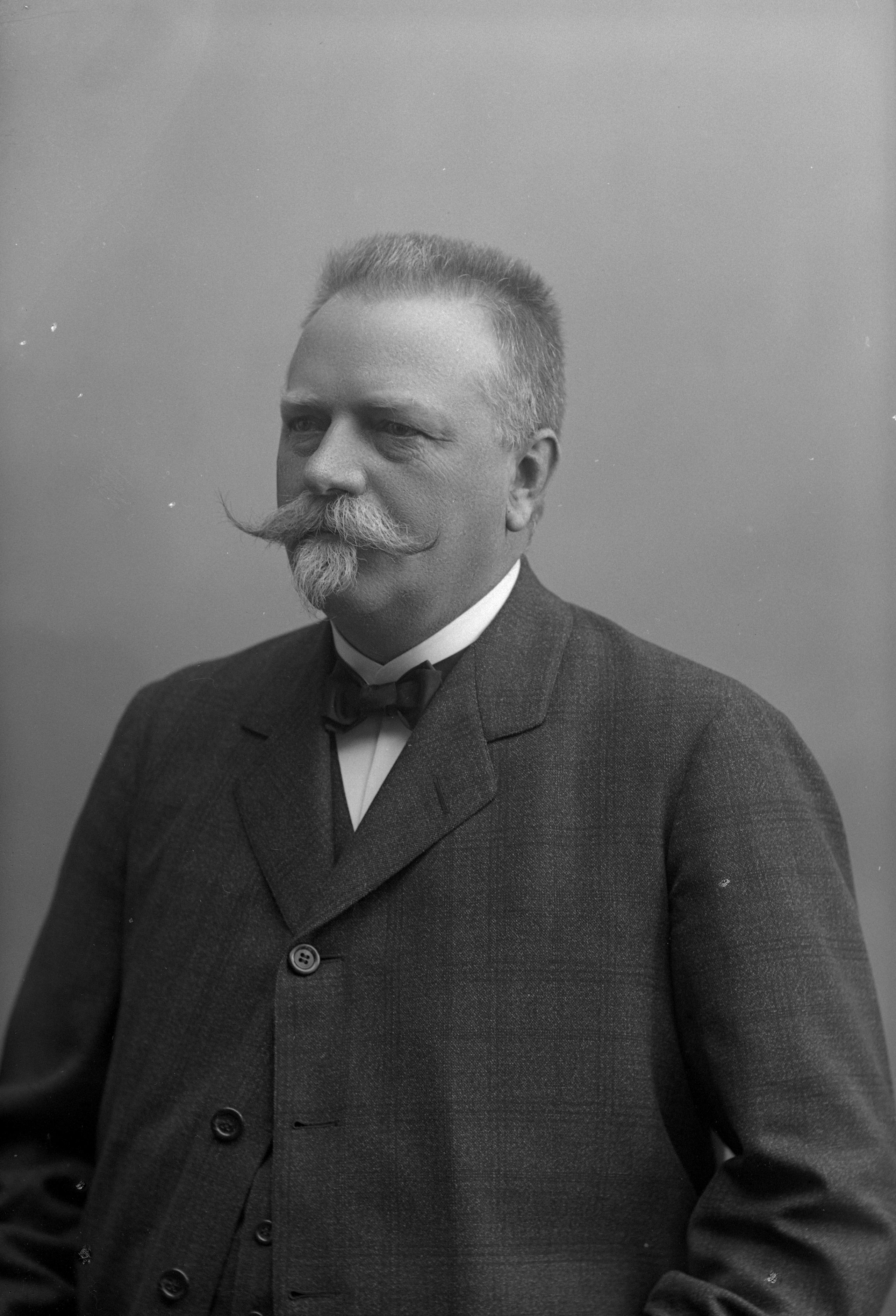Porträtt i halvfigur av polismannen Anders Persson Lindow i Vellinge. Tidigare kollega till kronolänsman August Hultberg (1838-1915).