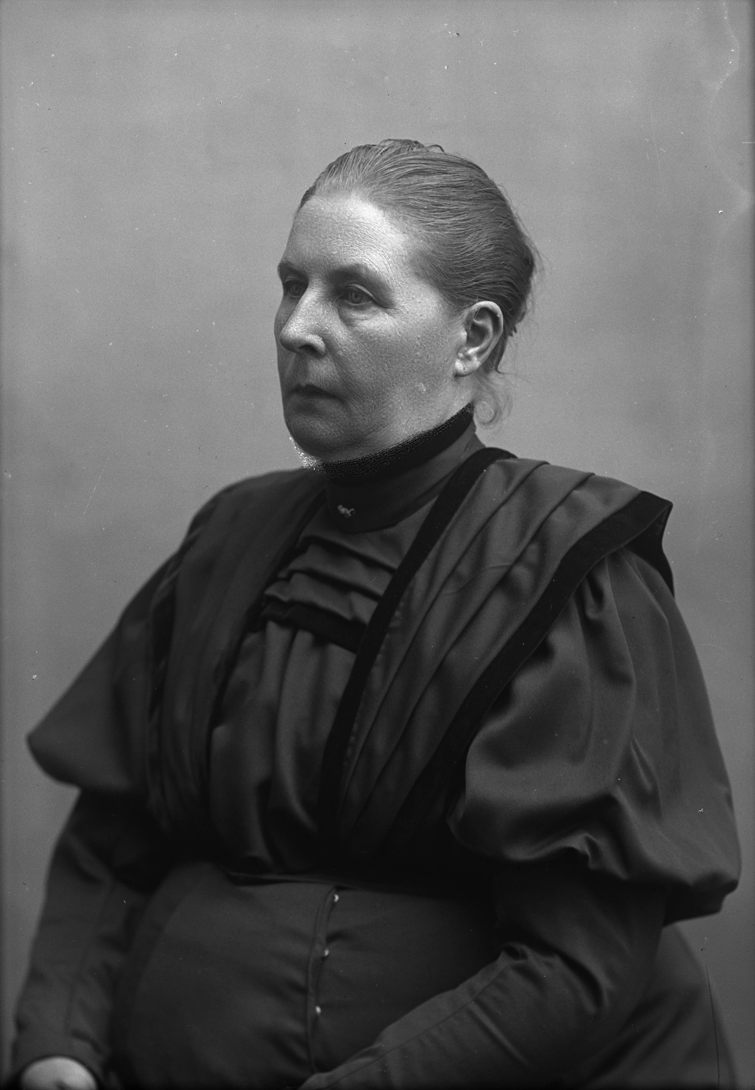 Porträtt i halvfigur av folkskollärarinnan Elina Norén.