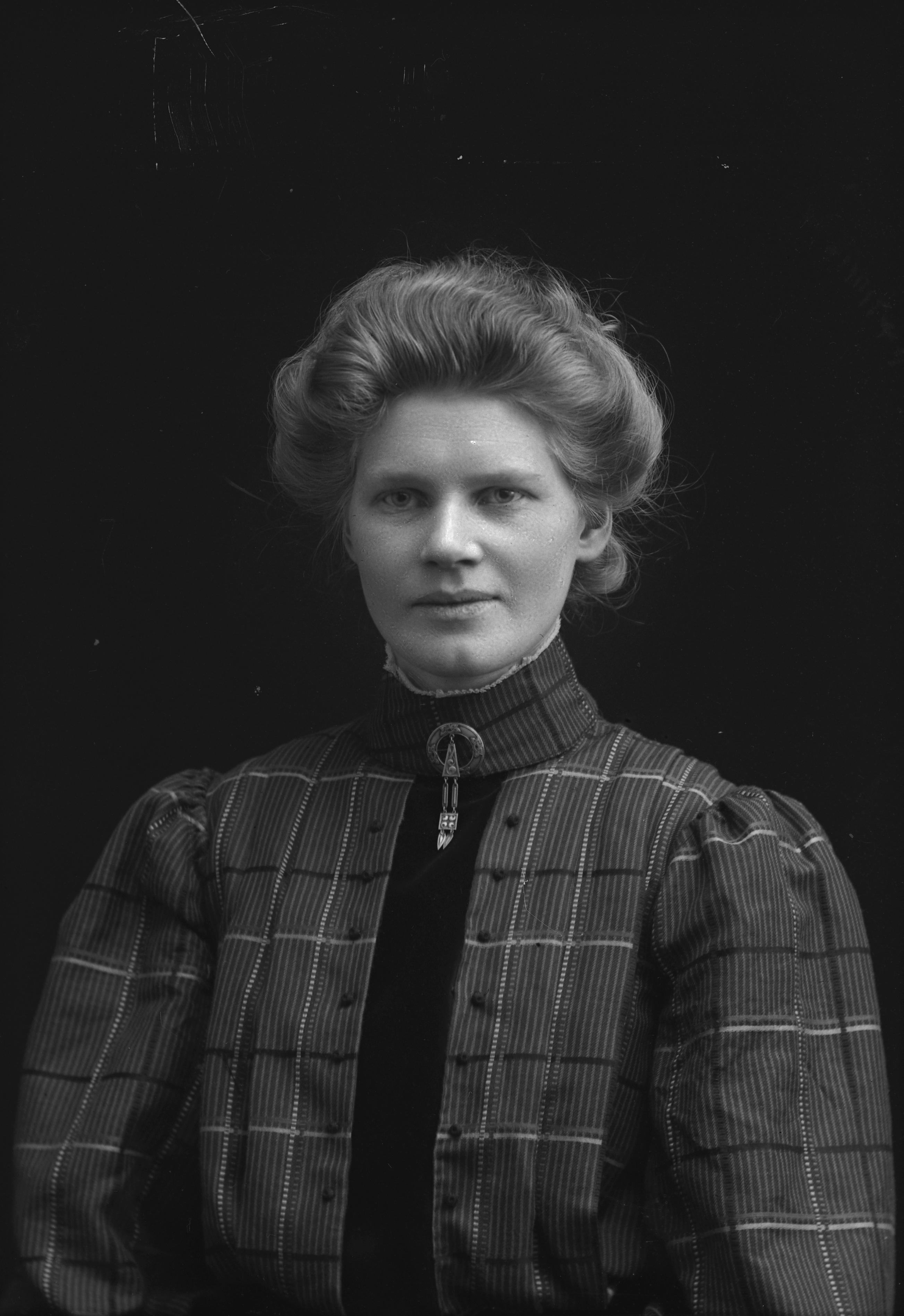 Porträtt i halvfigur av baderskan Tekla Ubbe.
