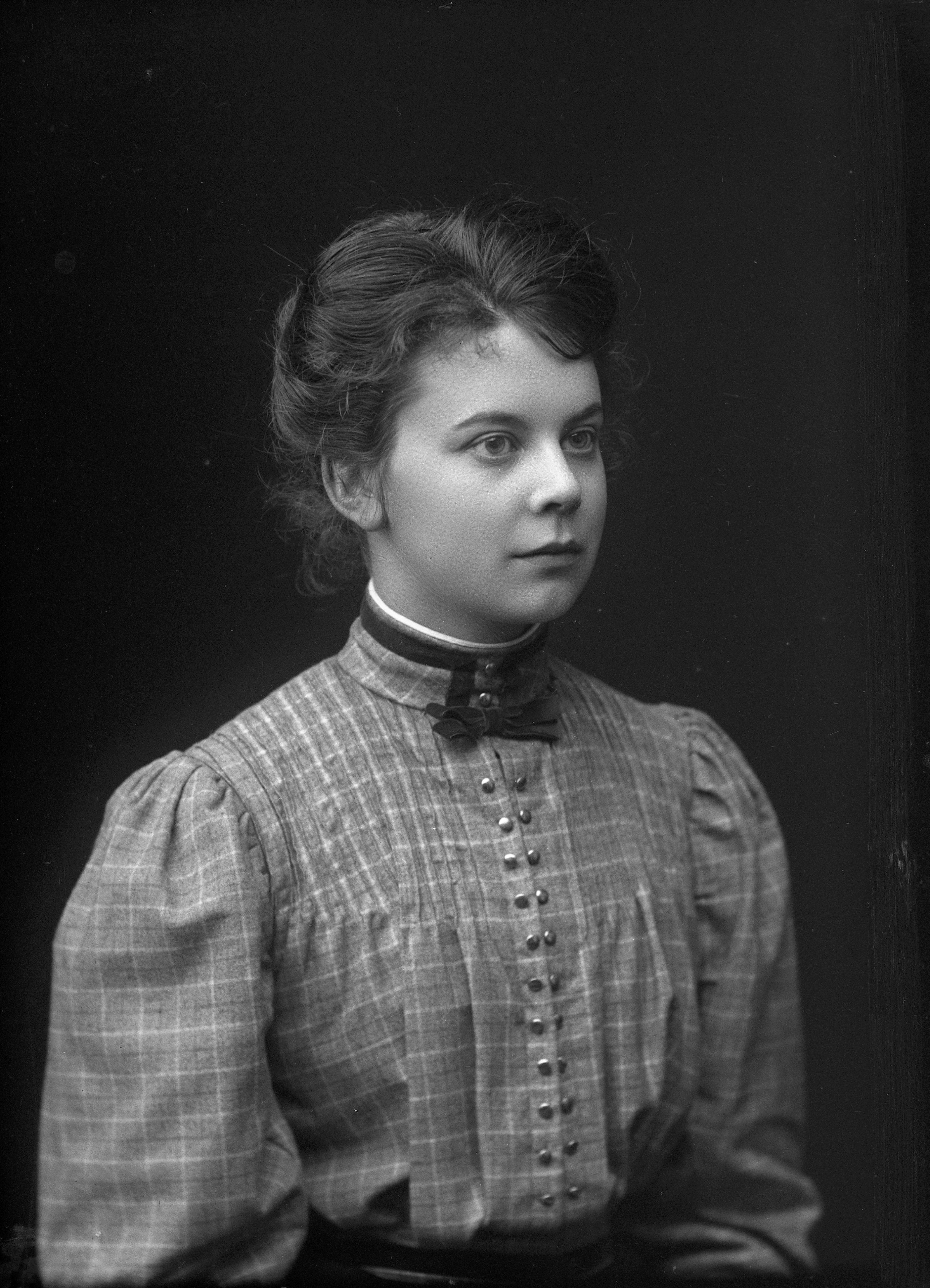 Porträtt i halvfigur av lärarinnan Andrea Pallin.