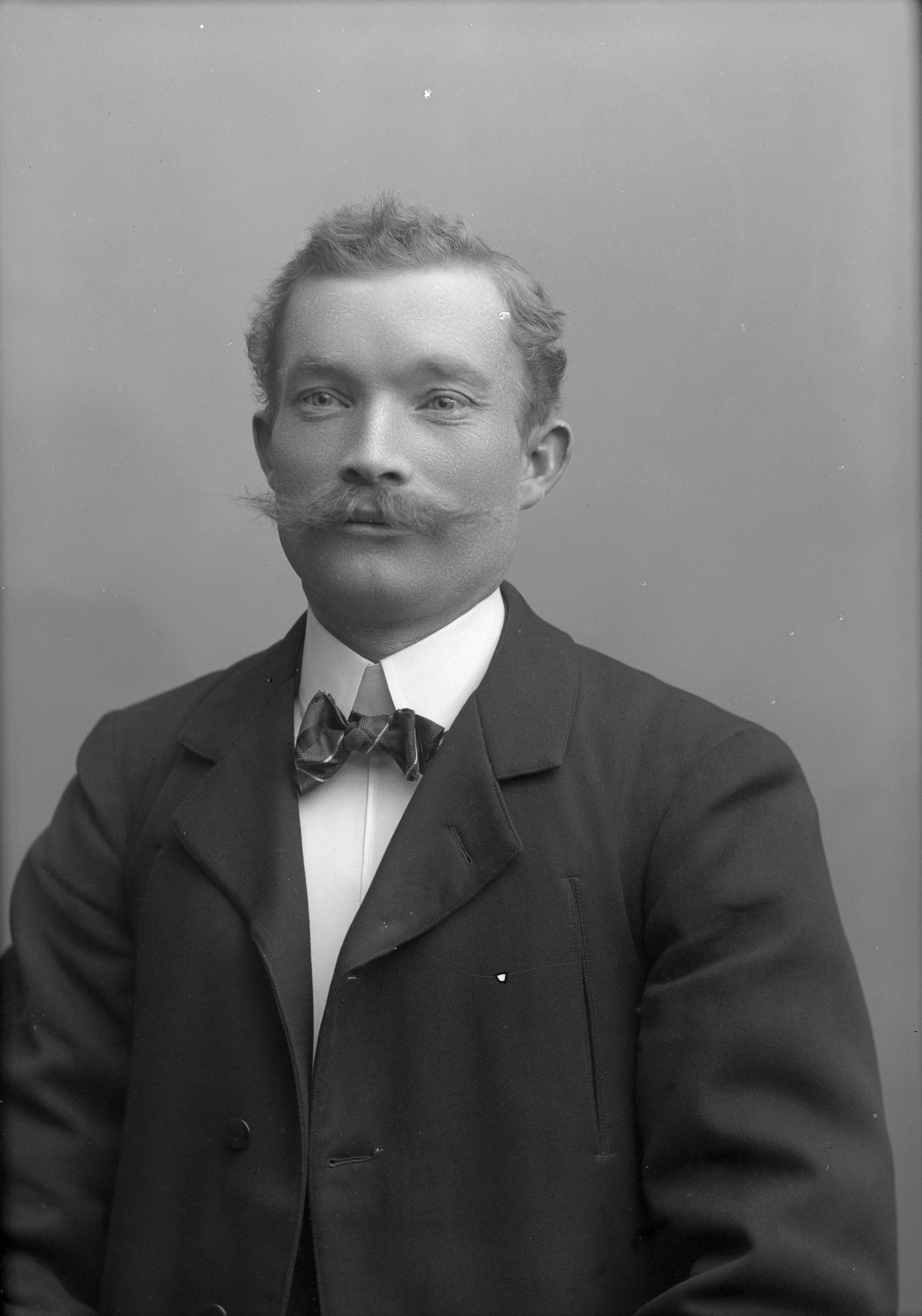 Porträtt i halvfigur av tapetserare Oscar Herman Berglund.