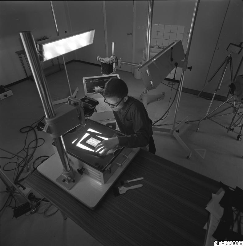 NEF 000069 :: mörkrum, ljusbord, avmaskningsram, fotoutrustning, man