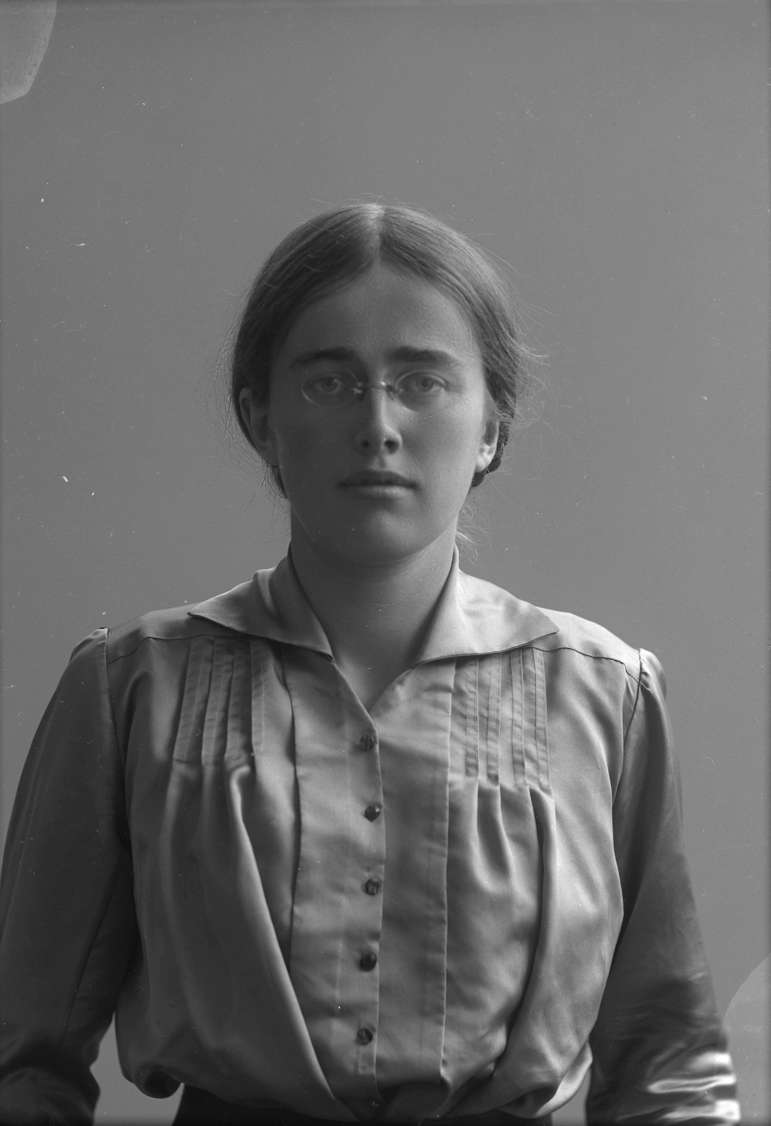 Porträtt i halvfigur av agronom fröken Swedenborg.