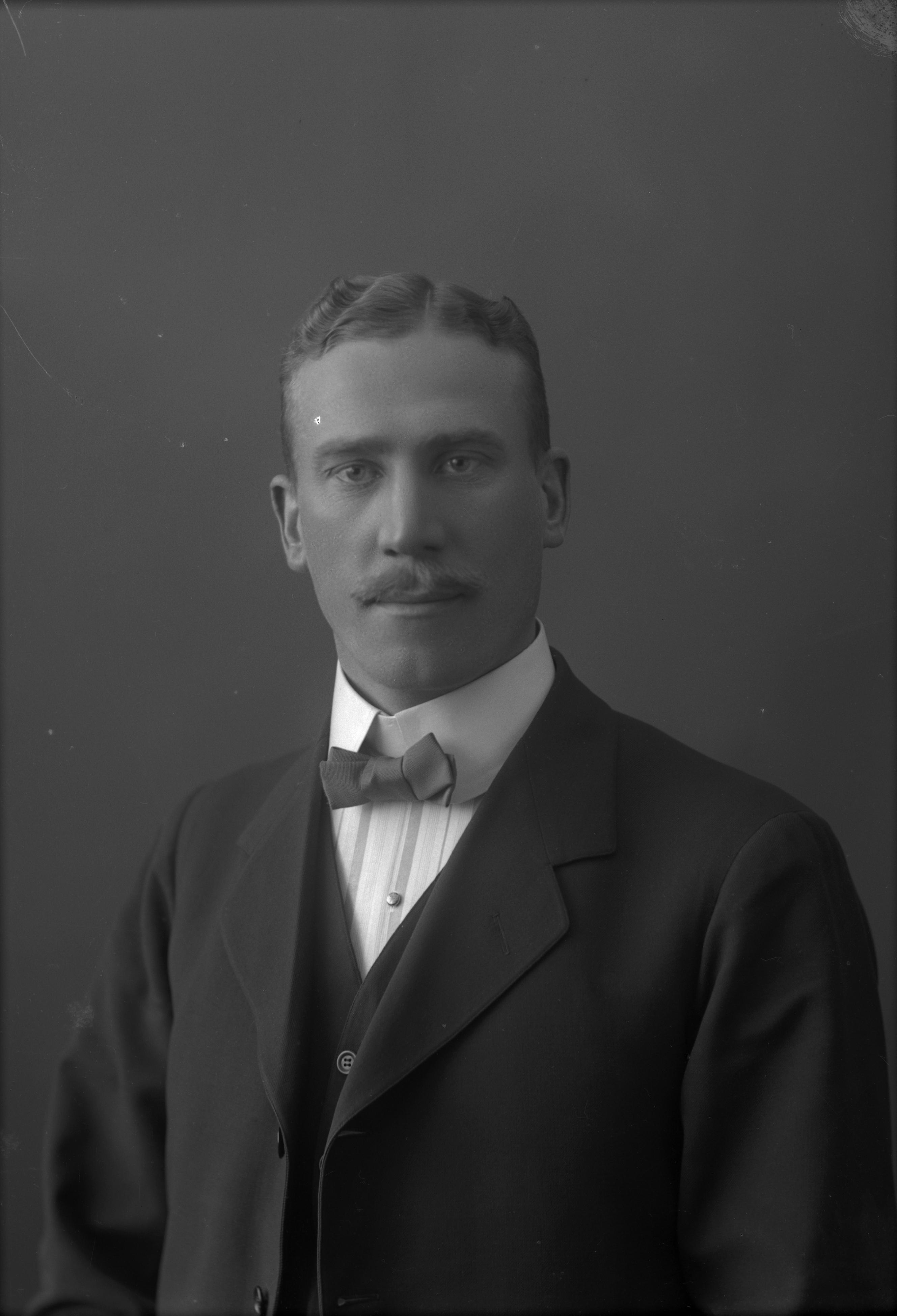 Porträtt i halvfigur av järnhandlare Viktor Isaksson Sandkvist.