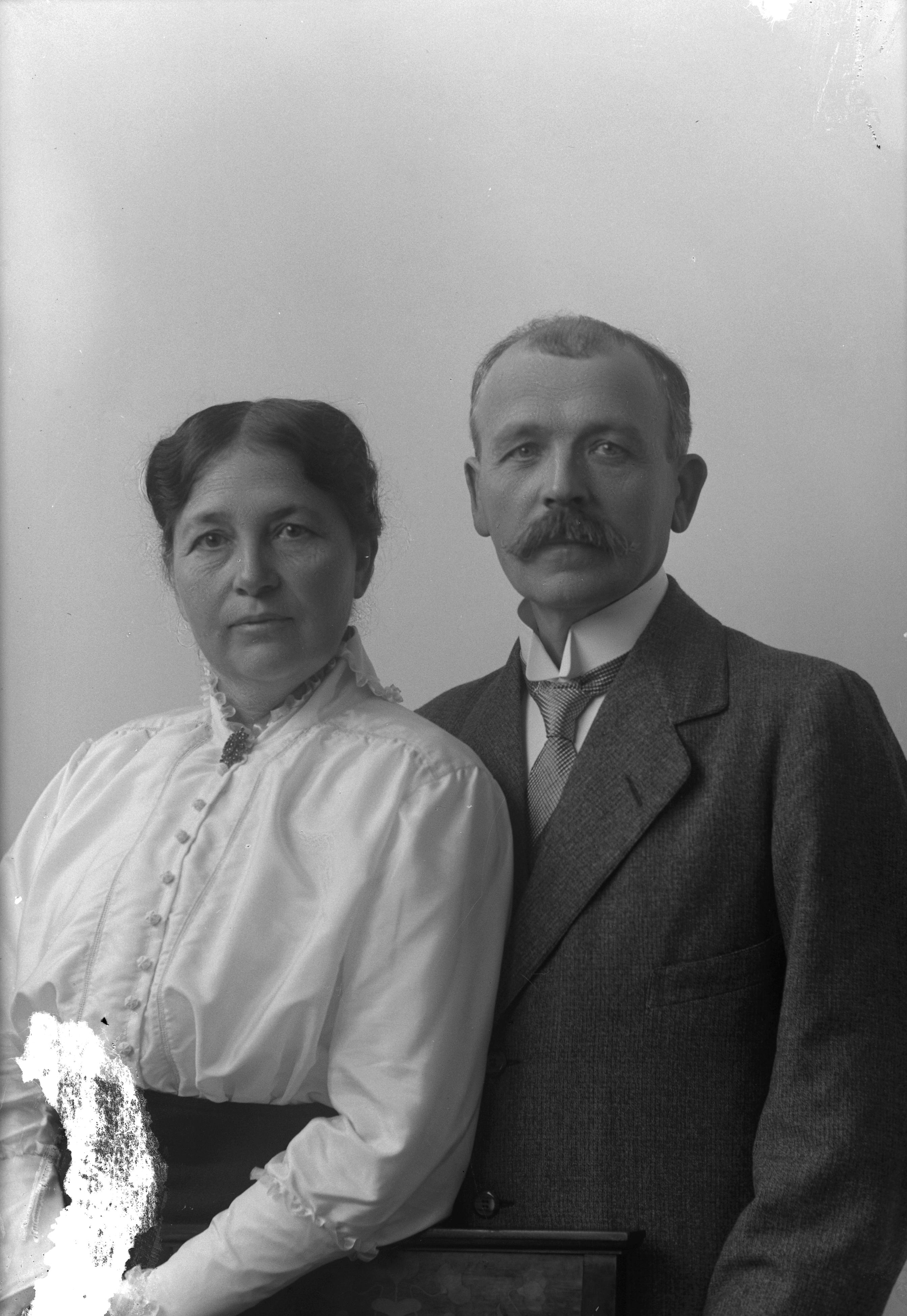 Porträtt i halvfigur av handelsmannen Lars Persson Löwegren med frun Anna.
