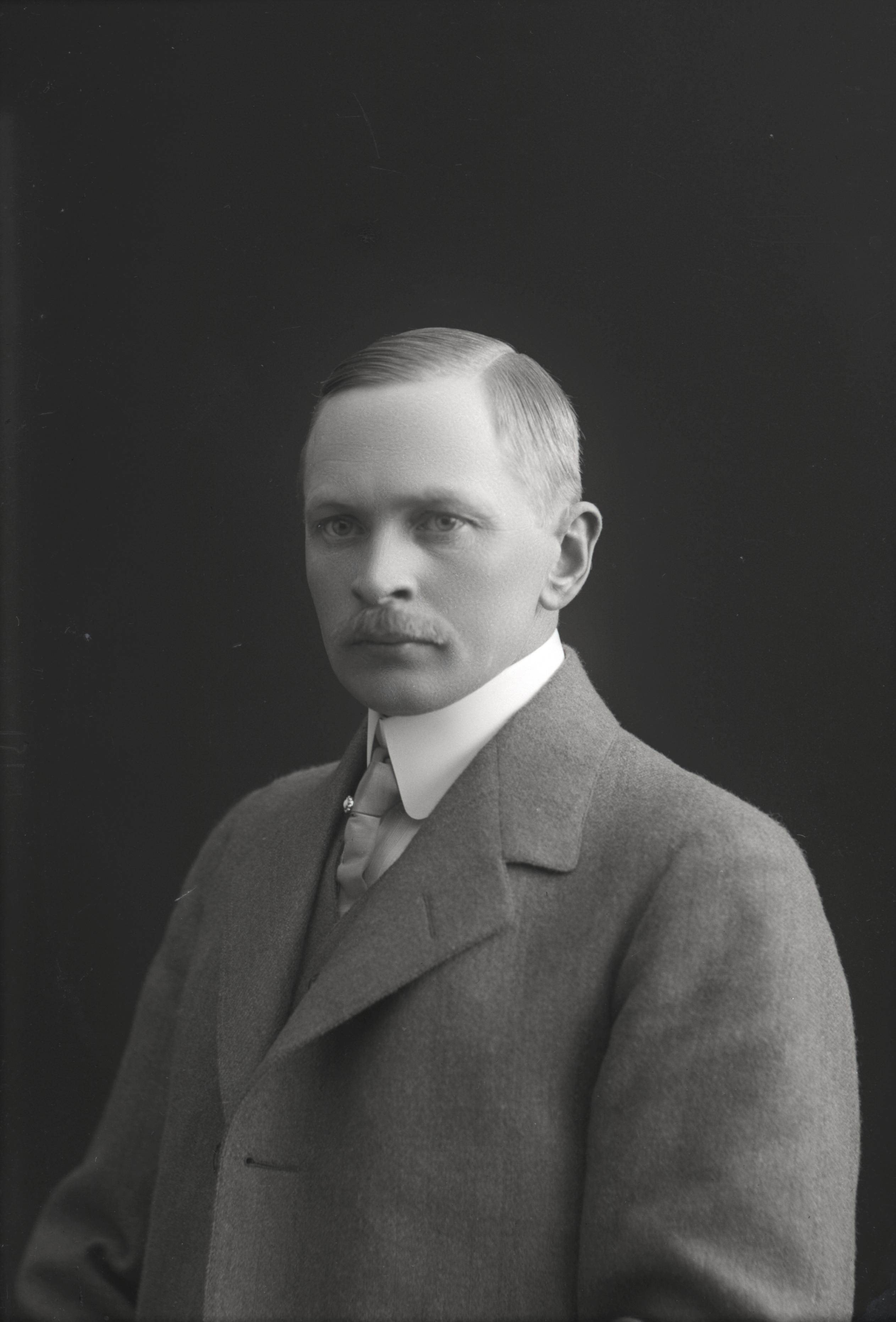 Porträtt i halvfigur av stuveribokhållare Johan Fransson.