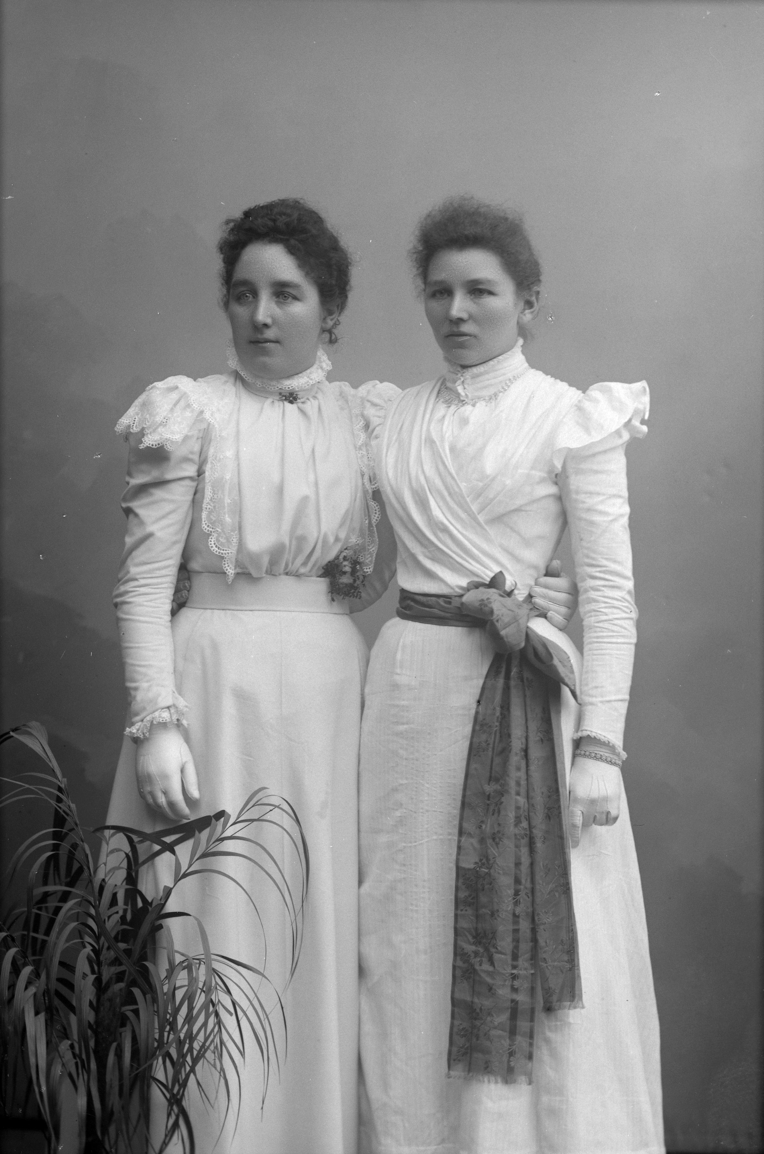 Porträtt i helfigur av Christina Olsson i Bjärred i sällskap med en okänd kvinna.