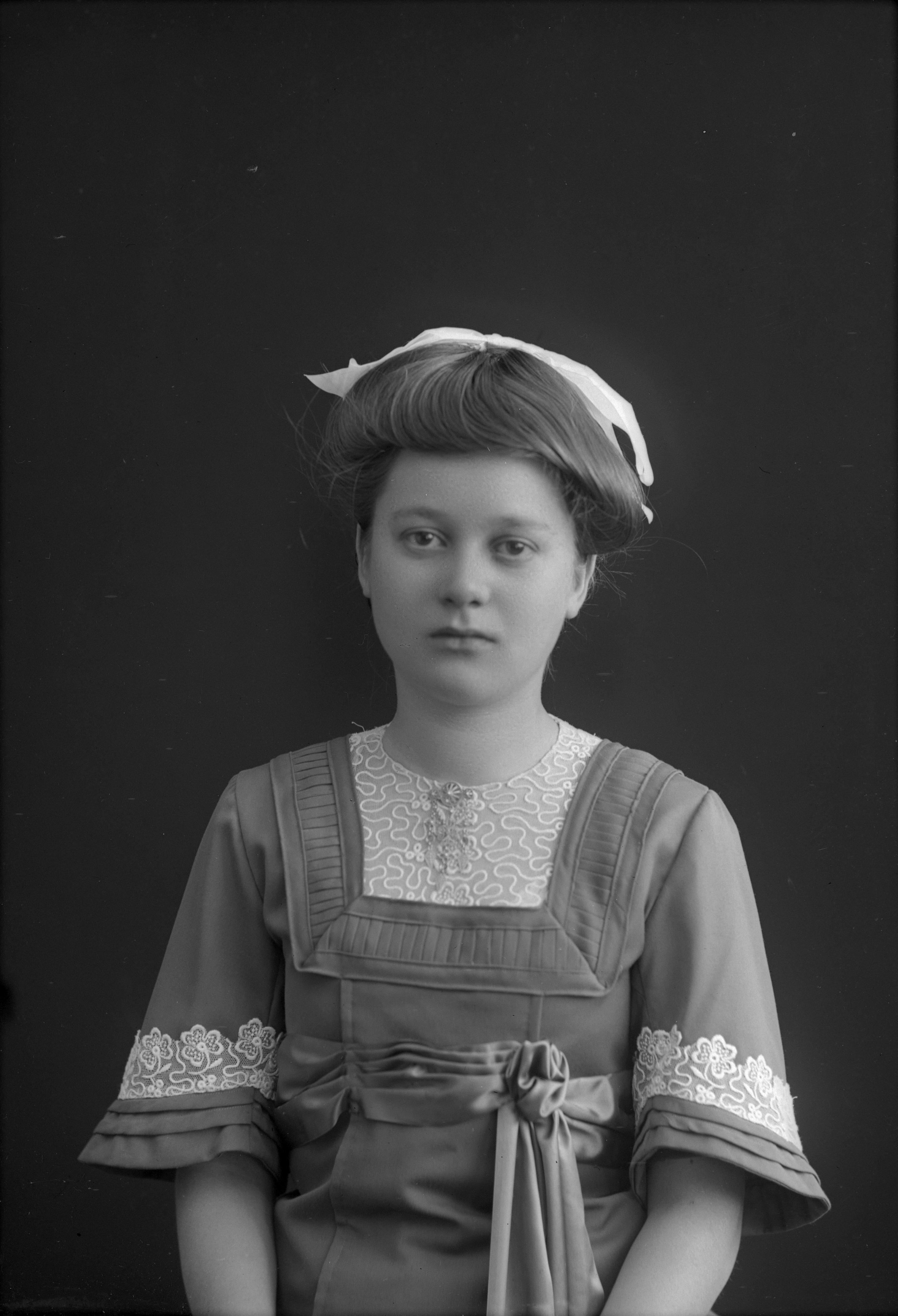 Porträtt i halvfigur av Emmy Åkesson vid Limhamns Gipsfabrik.