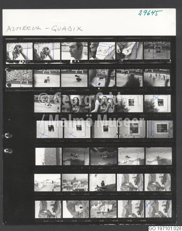 GO 197101:028 :: barn, bostadshus, dragdjur, dryck, fönster, kvinnoporträtt, packdon, publik, tjurfäktning