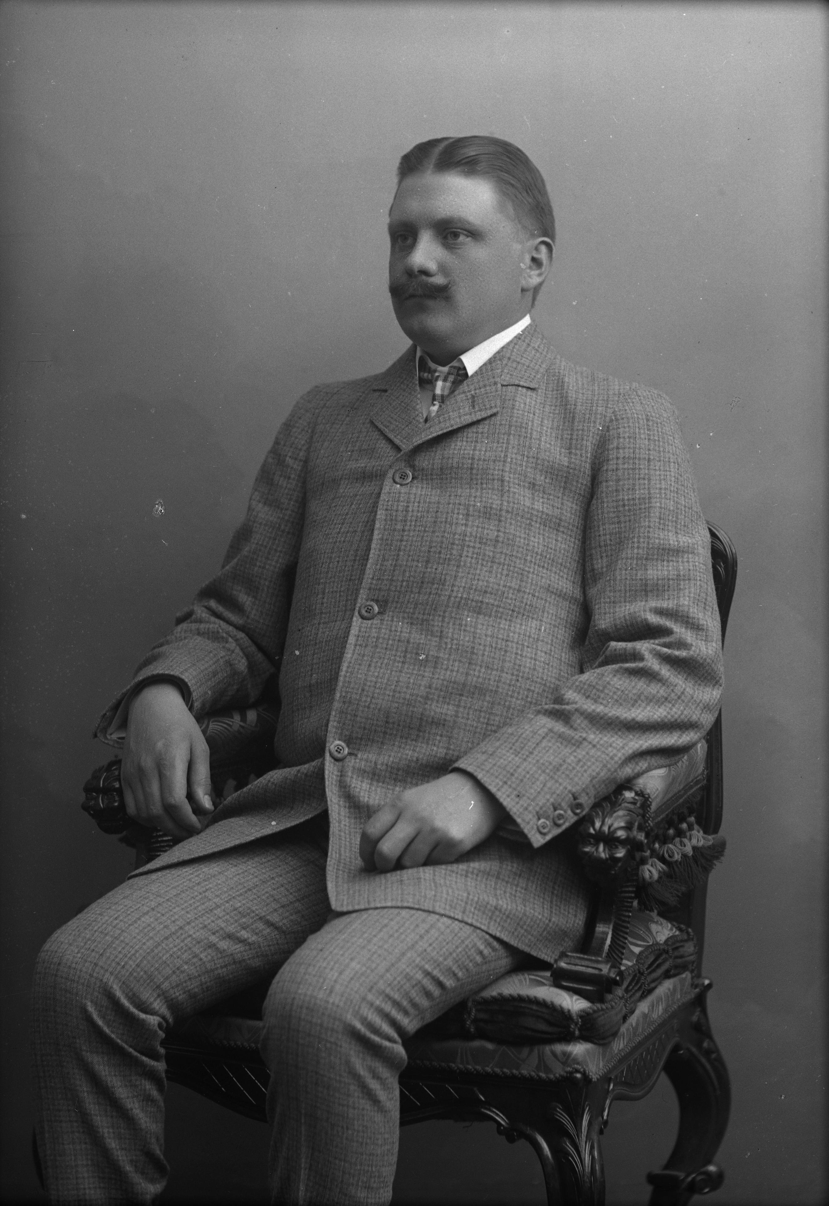 Porträtt i helfigur av Carl P. Nilsson, postanställd.