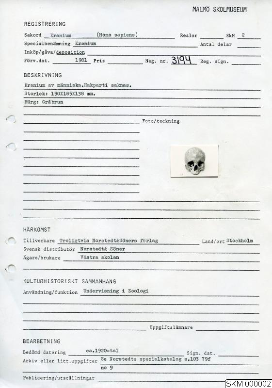 Undervisningsväsen; Utbildning; Undervisningsmateriel; Läromedel; Människokroppens anatomi; Kranium