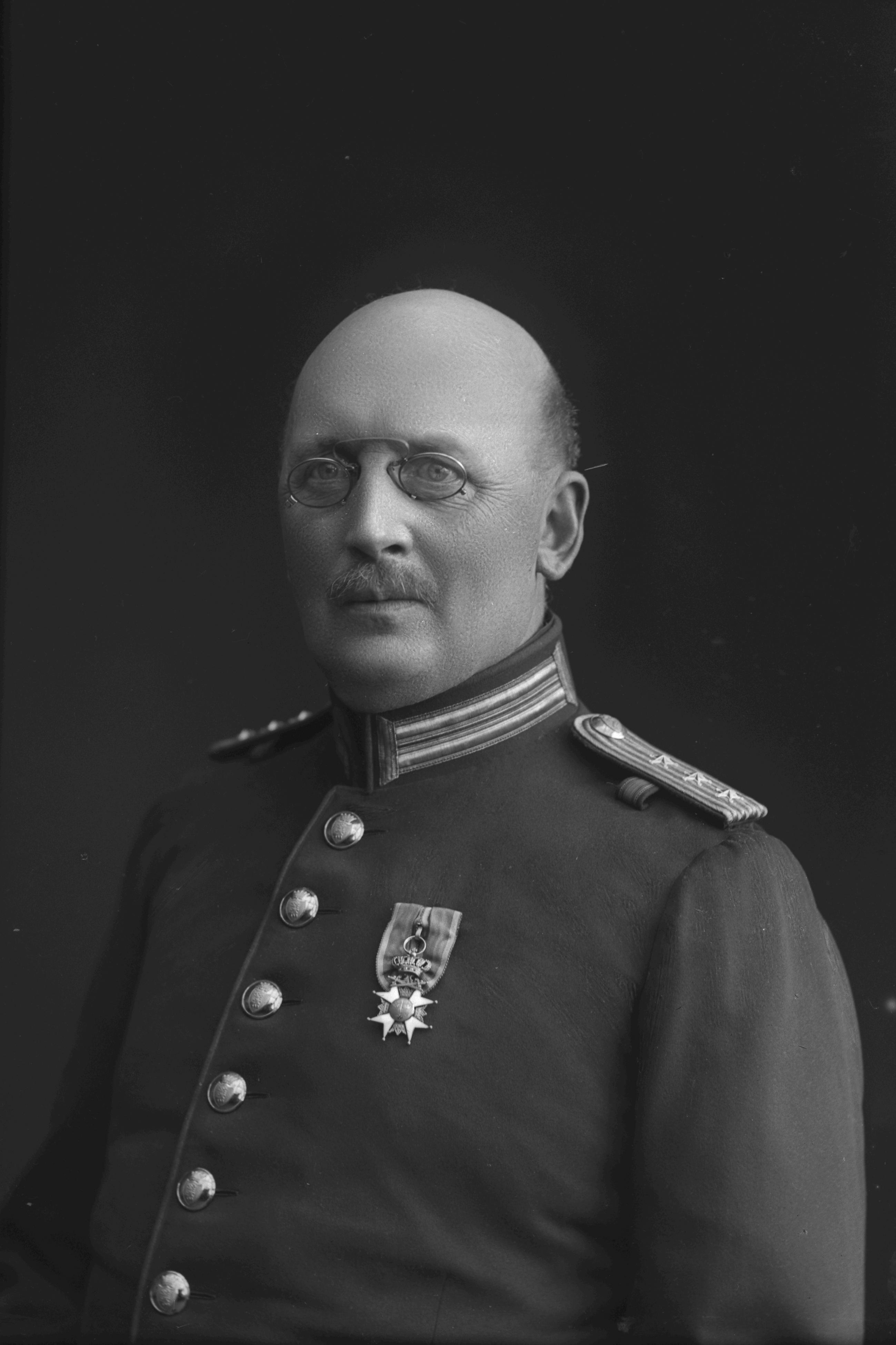 Porträtt i halvfigur av kapten Jakob "Jacques" Quensel, iklädd militäruniform med medalj på bröstet.