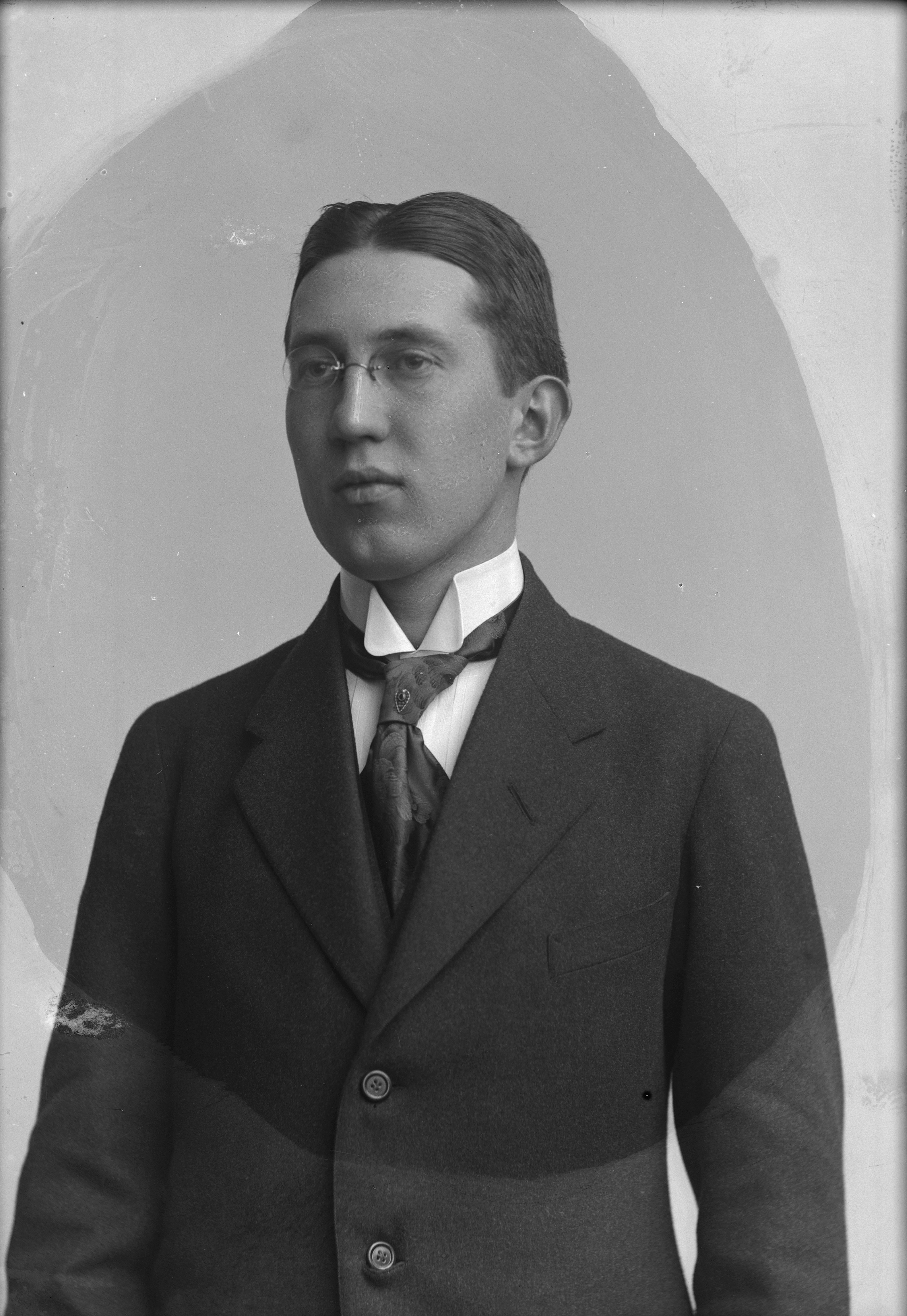 Porträtt i halvfigur av juridikstudenten Gustaf Adolf Paulsson.