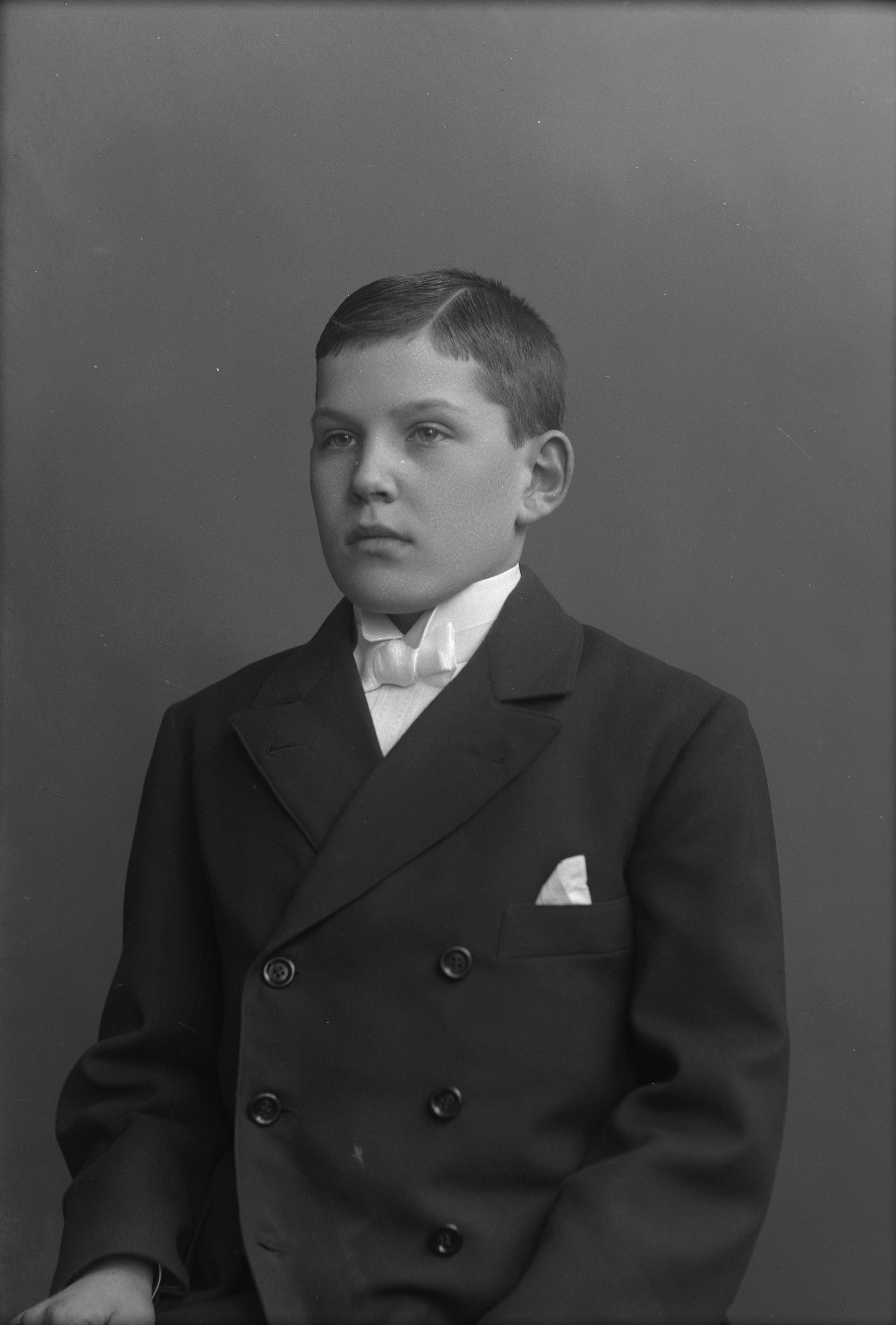 Porträtt i halvfigur av konfirmanden Ivar Sandberg.