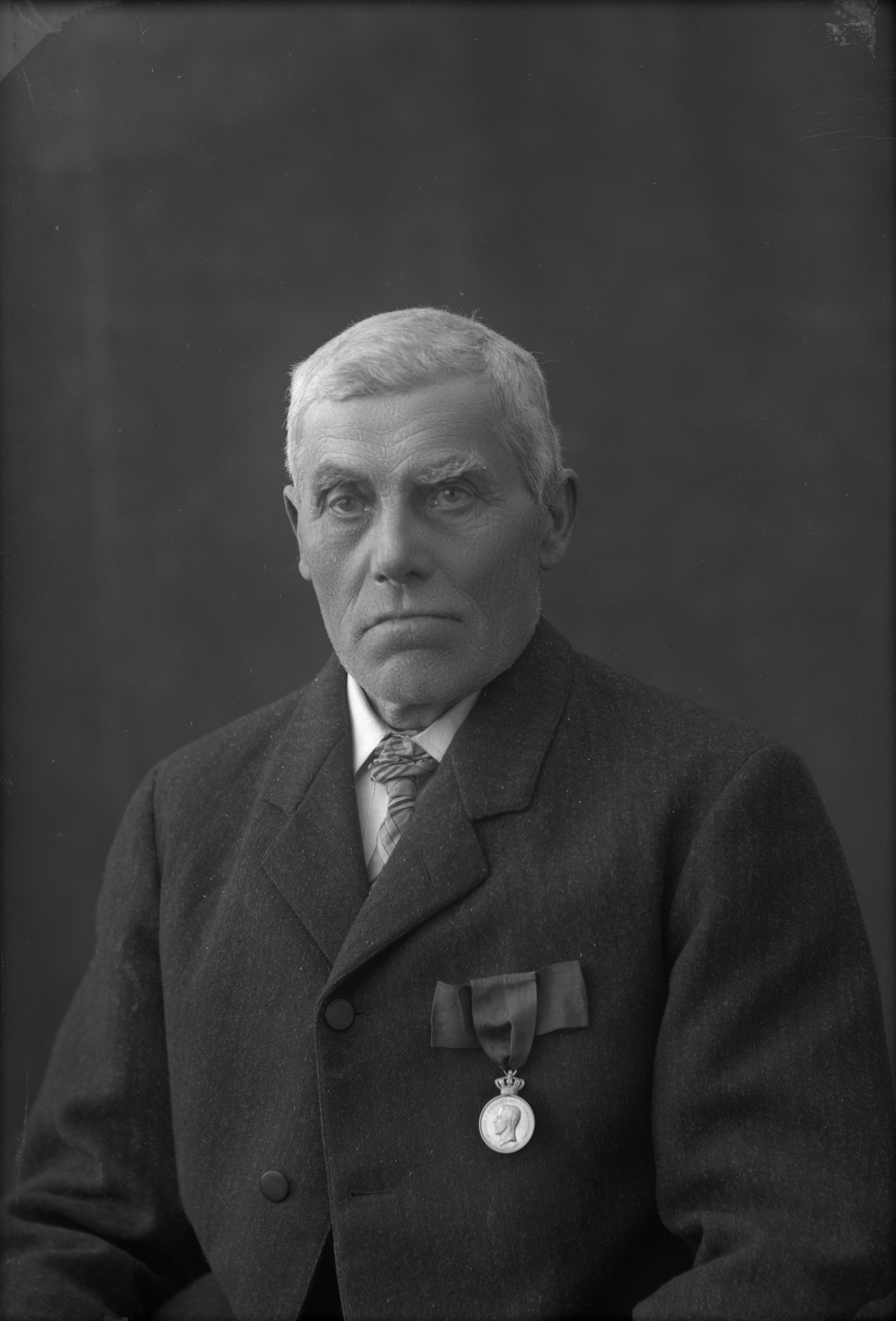 Porträtt i halvfigur av Hans Andersson med medalj på rocken.