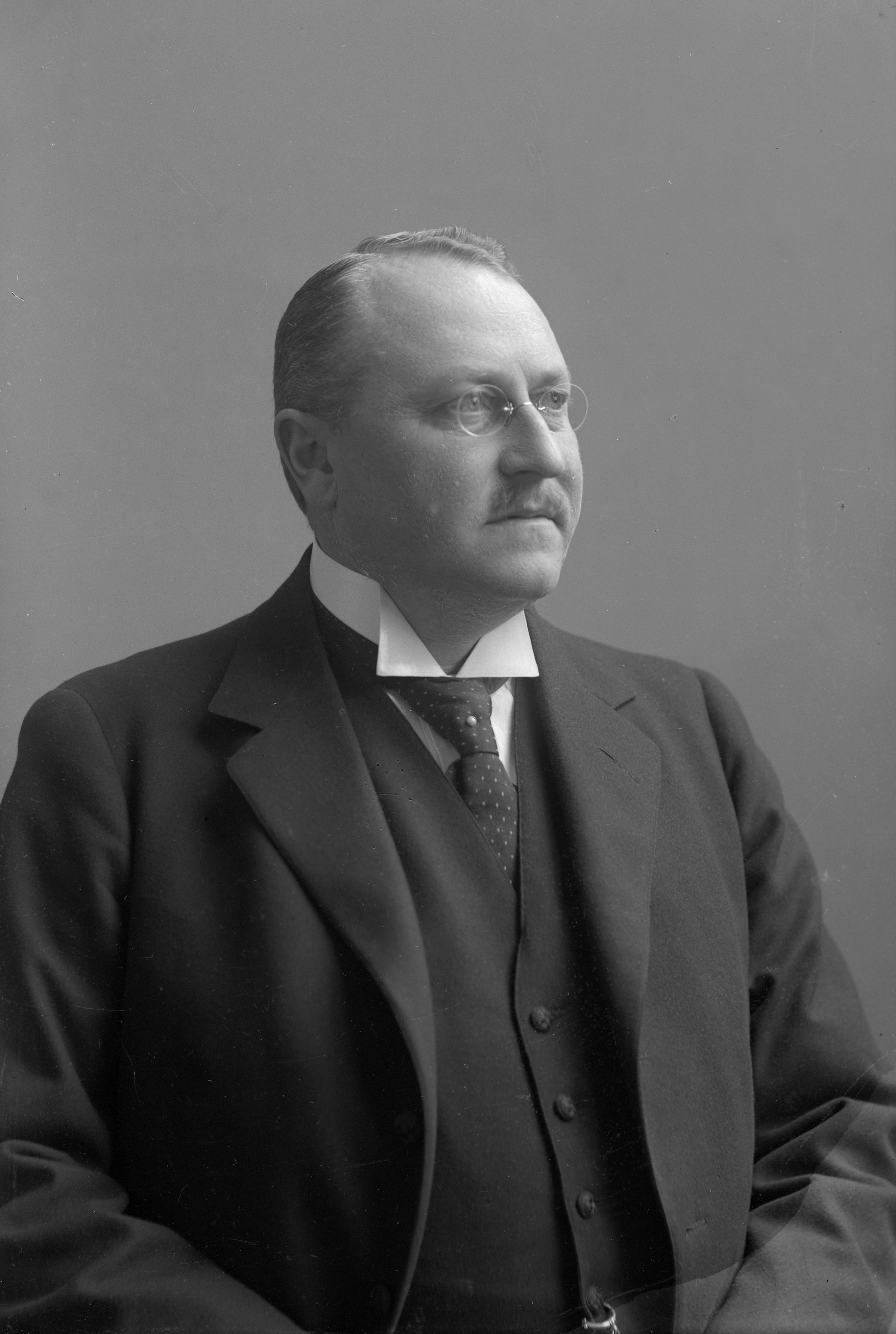 Porträtt i halvfigur av Einar Sahlén, kapten i Väg- och vattenbyggnadskåren.