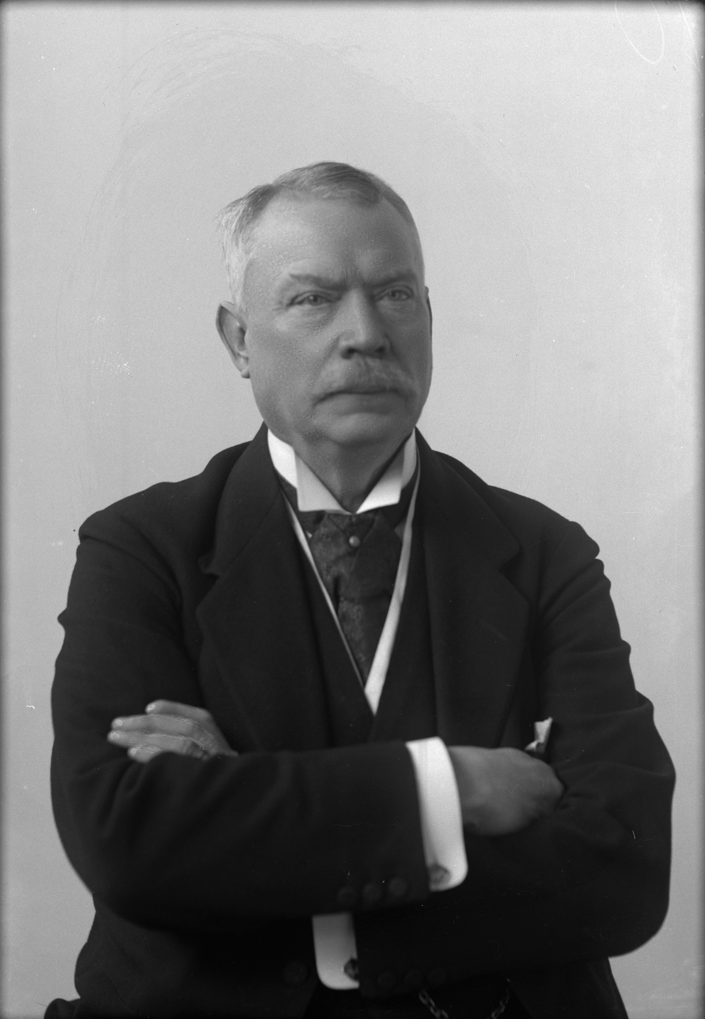 Porträtt i halvfigur av grosshandlare Adolf Lindahl.