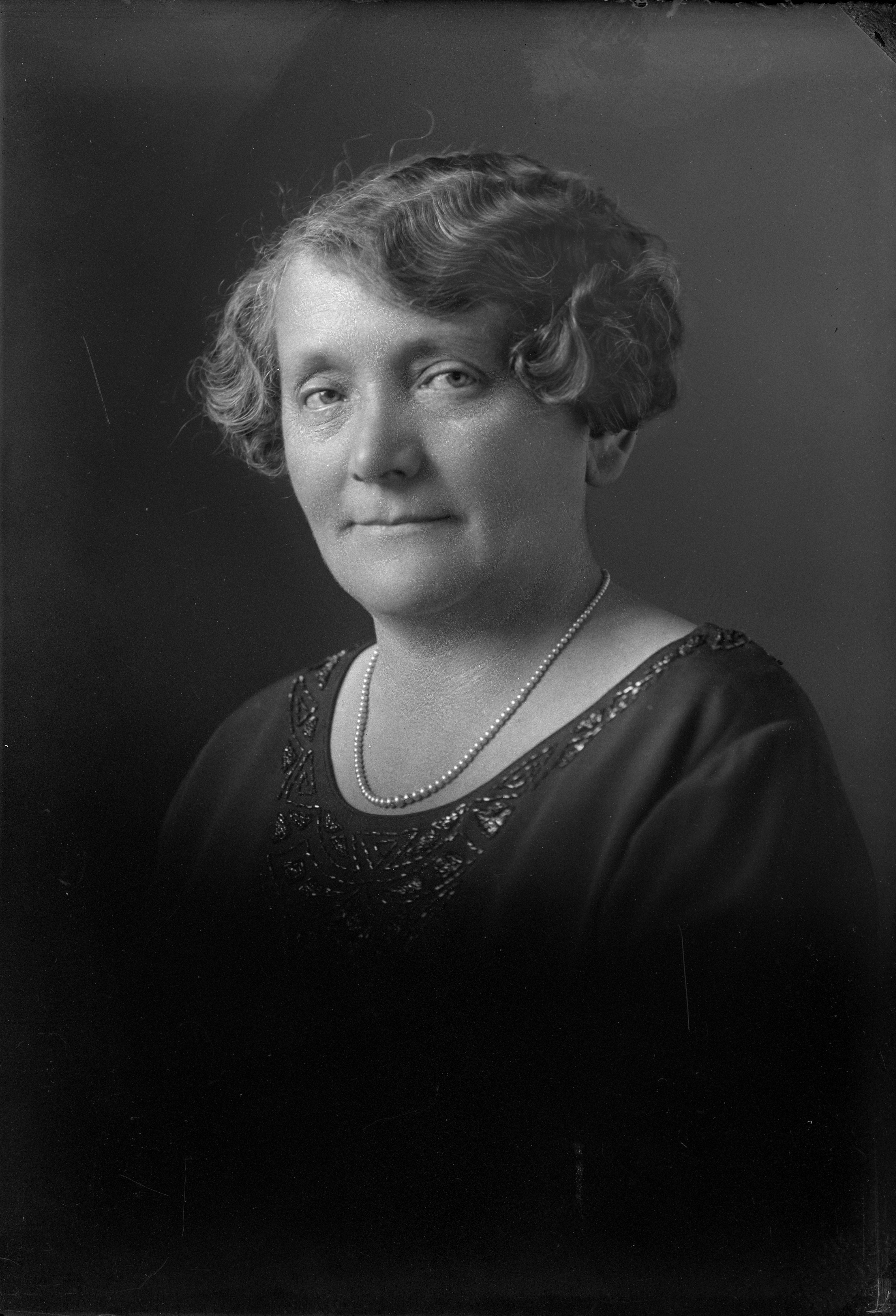 Porträtt i halvfigur av folkskollärarinnan Mathilda Holmgren.