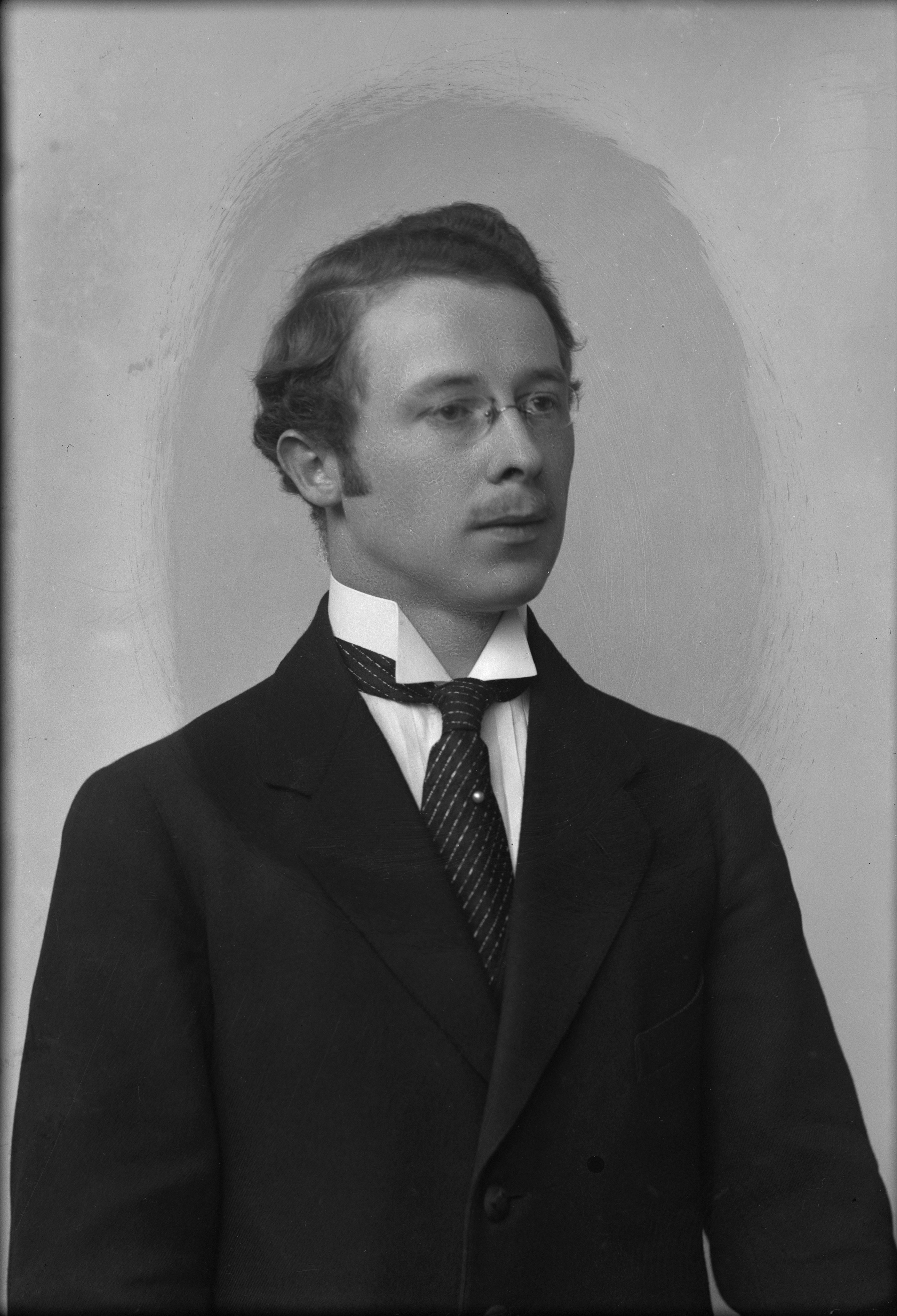 Porträtt i halvfigur av högskolestuderande herr Svensson.