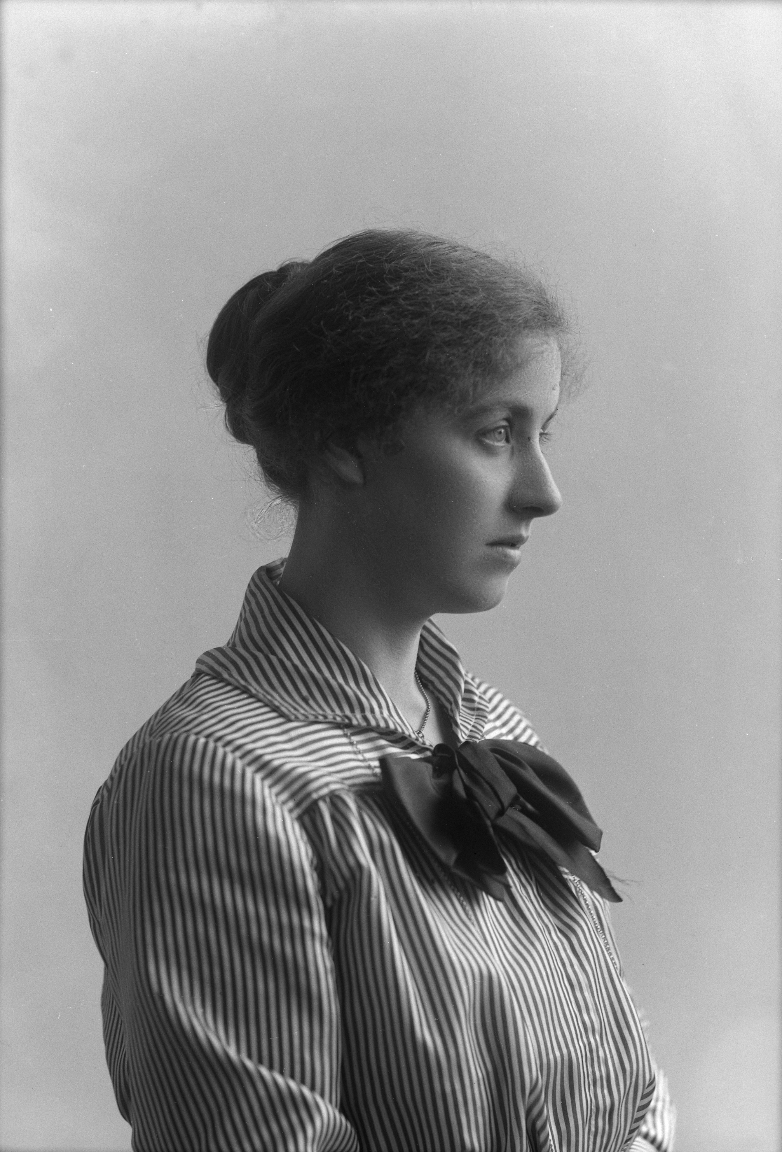 Porträtt i halvfigur av Olga Wetterlund.
