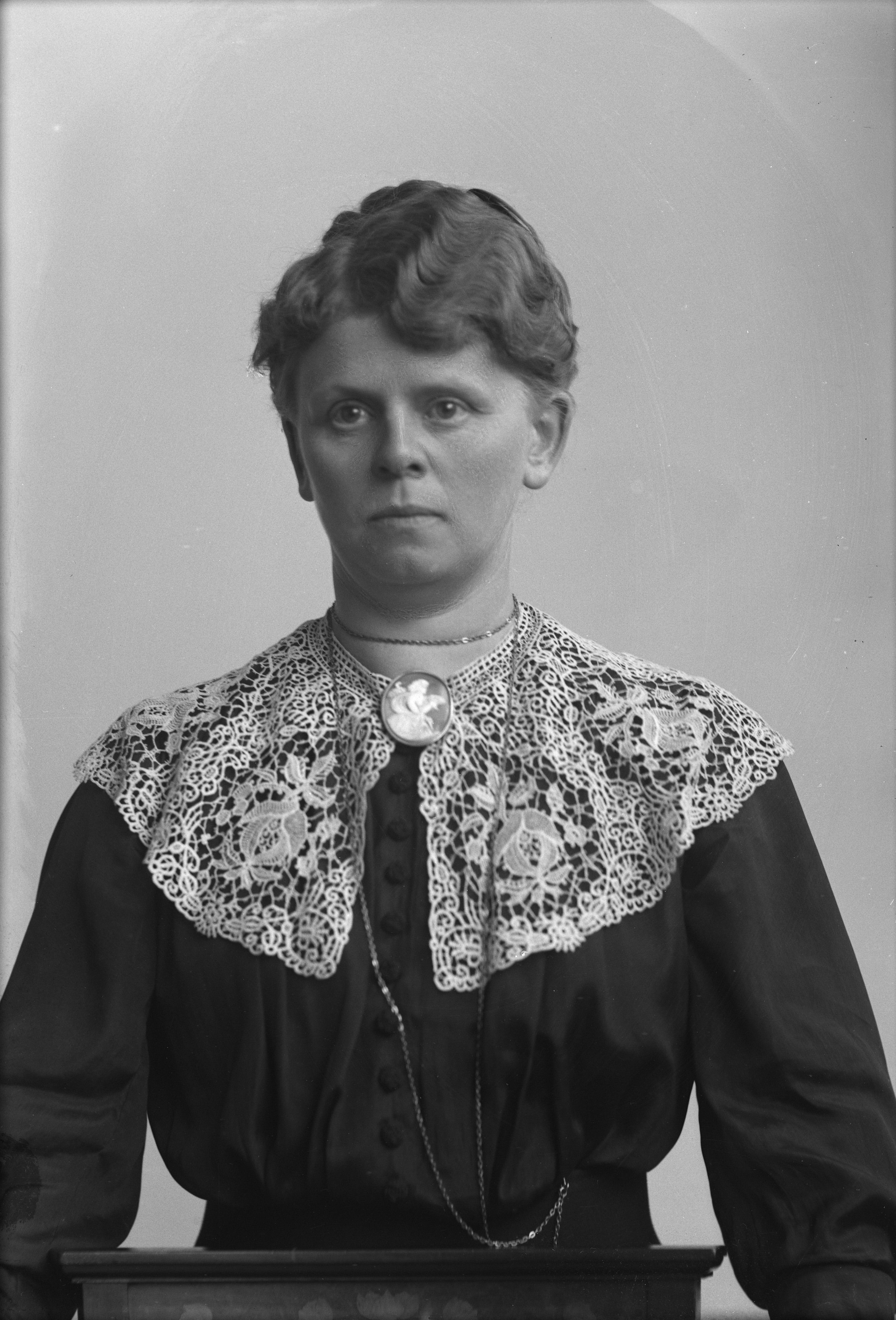 Porträtt i halvfigur av fru Andersson, bokhandlare.
