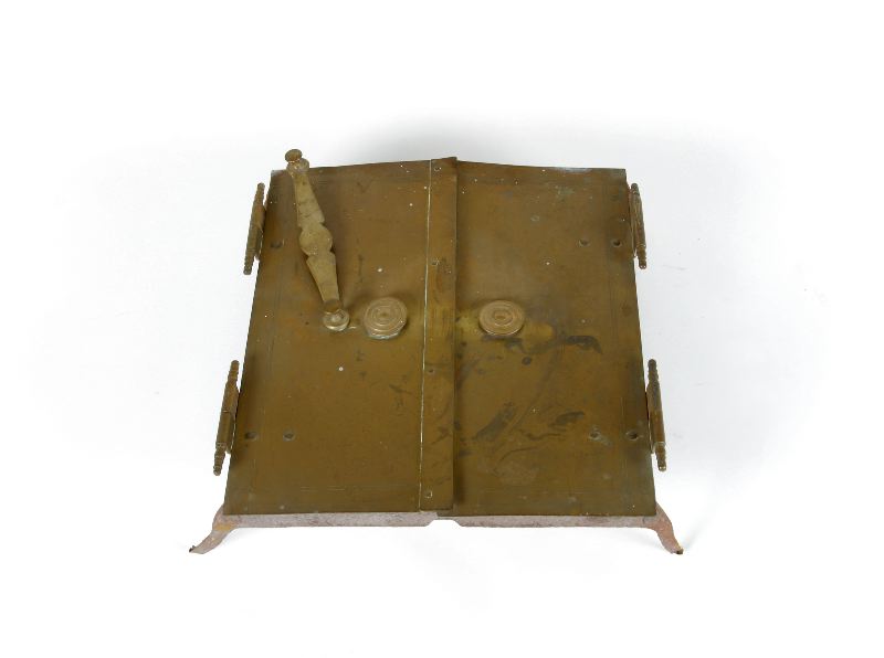 Järnram med parluckor av mässing på mässingsstaplar.