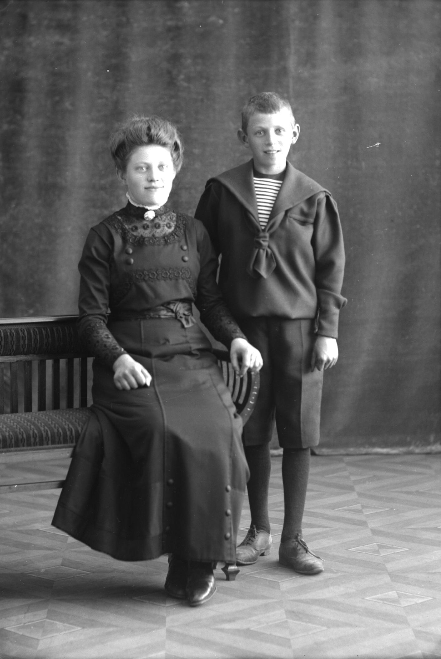Porträtt i helfigur av Ingrid Melin med sonen Oskar.